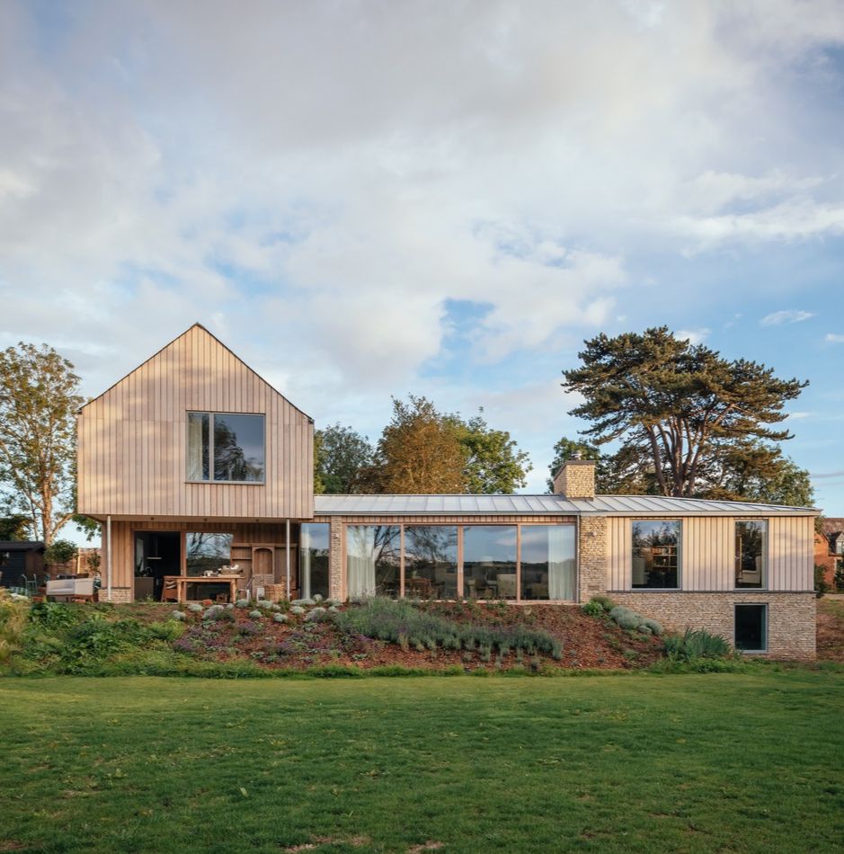 Cotswolds House is a highly insulated prefabricated timber-framed house.