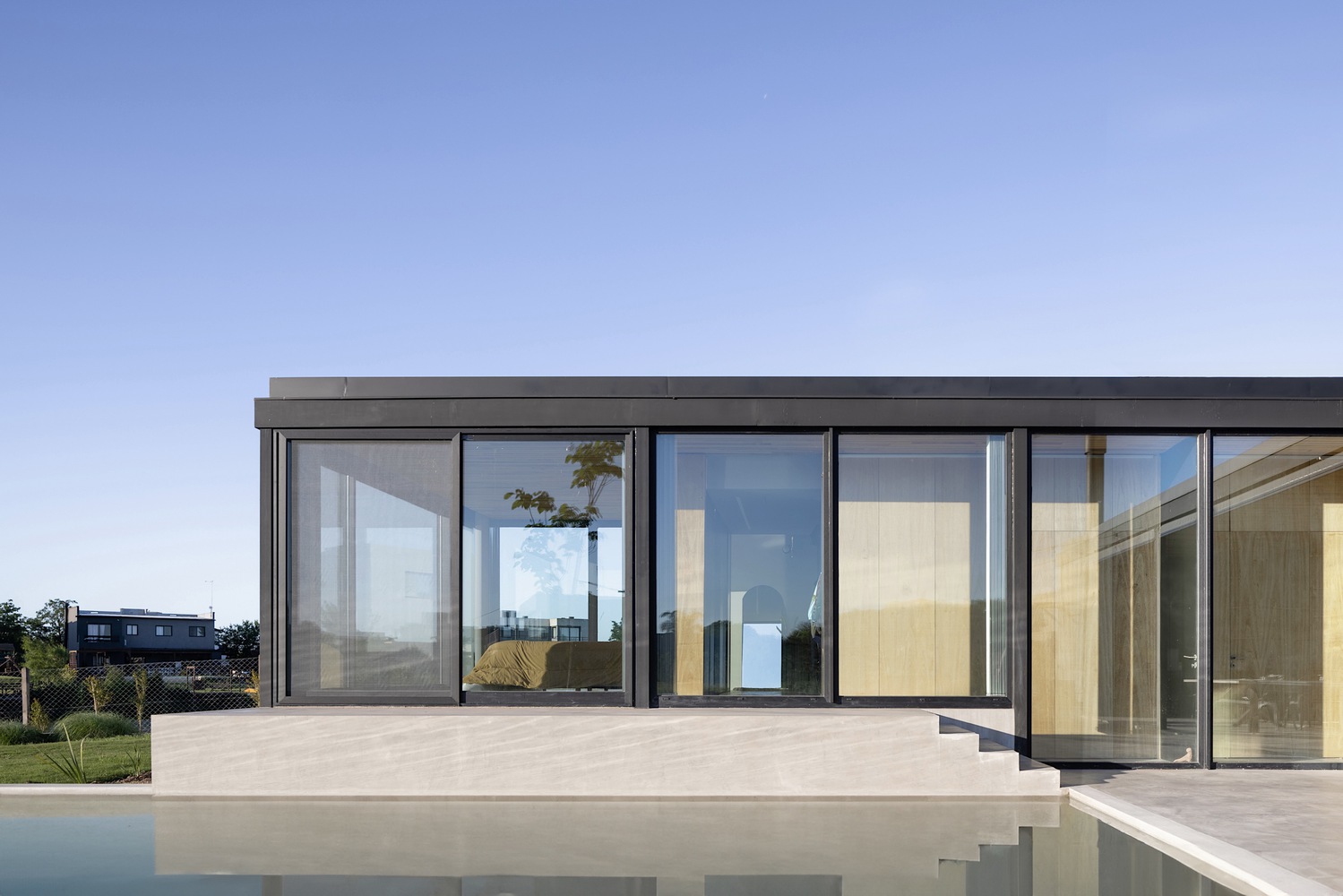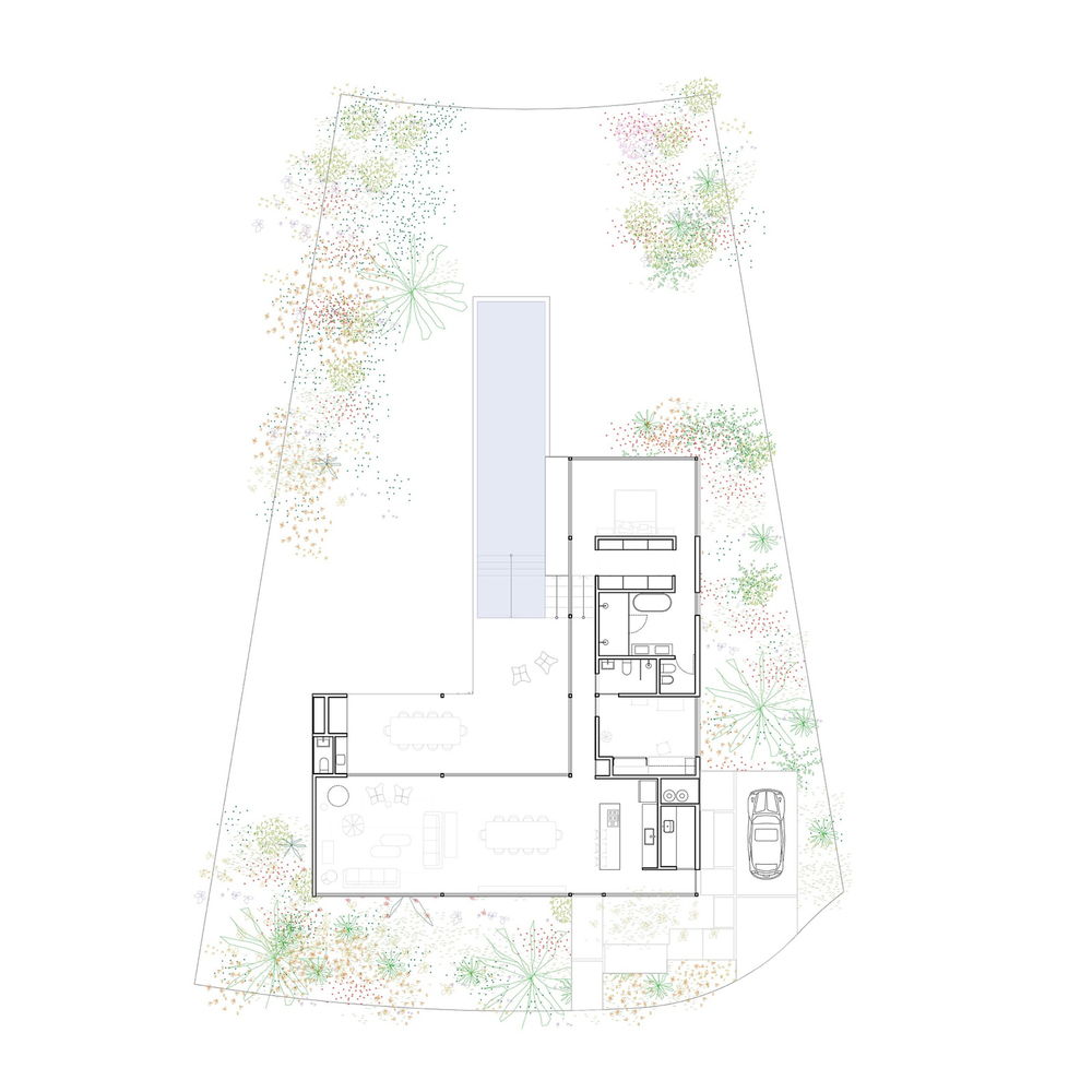 It was then decided that the house would have two heights to respond to these two scales, but only one flat and continuous roof.