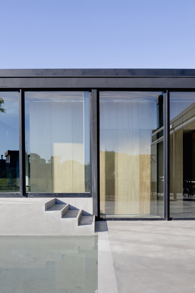 Glass is responsible for materializing its boundary, and finally, a series of vertical curtains act as a filter between the interior and the exterior.