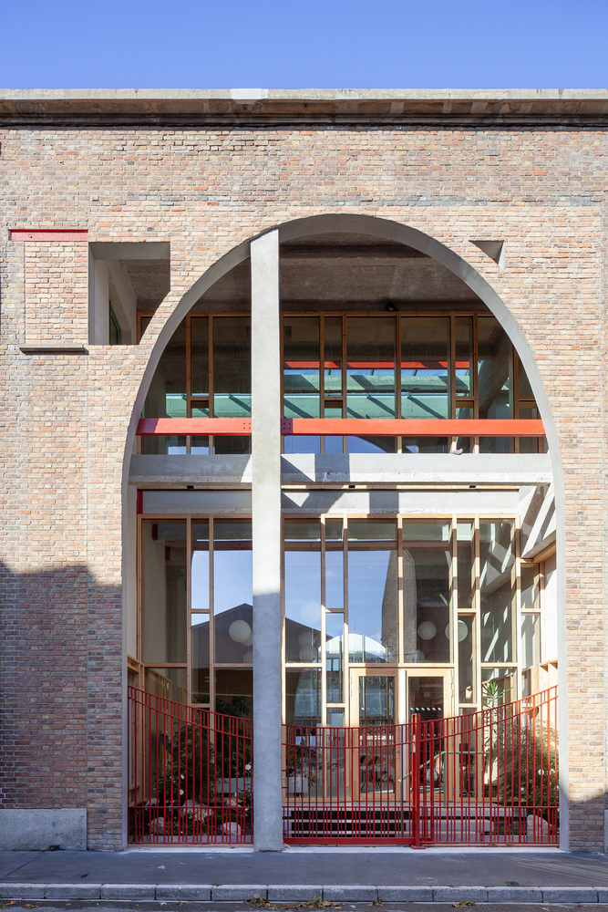 The architectural motif of the arch gives the building a public facility status, signaling that it is open to visitors.
