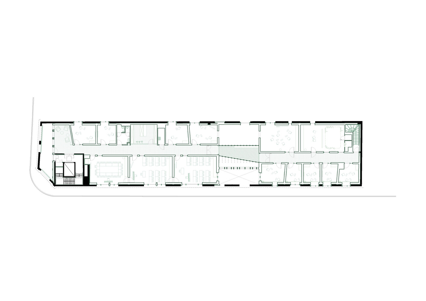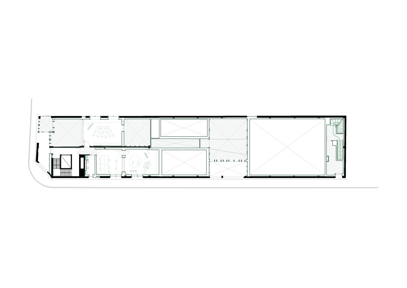 These monumental openings reveal the conservatory's shared spaces: halls, improvisation areas, waiting rooms, etc.