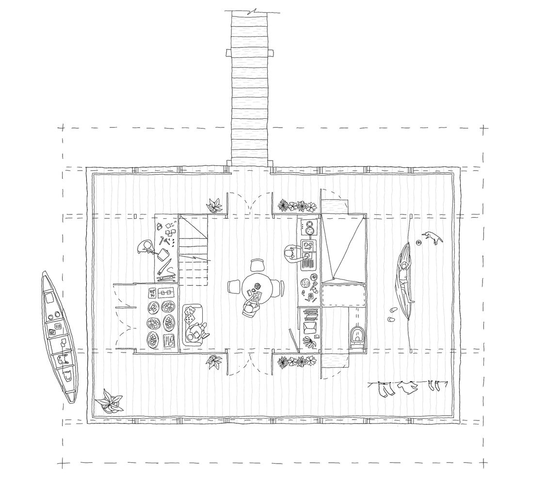 Throughout the participatory process, the community contributed to defining materials, spatial requirements, and construction techniques, sharing their empirical knowledge of the river’s dynamics and the essential needs of floating life.