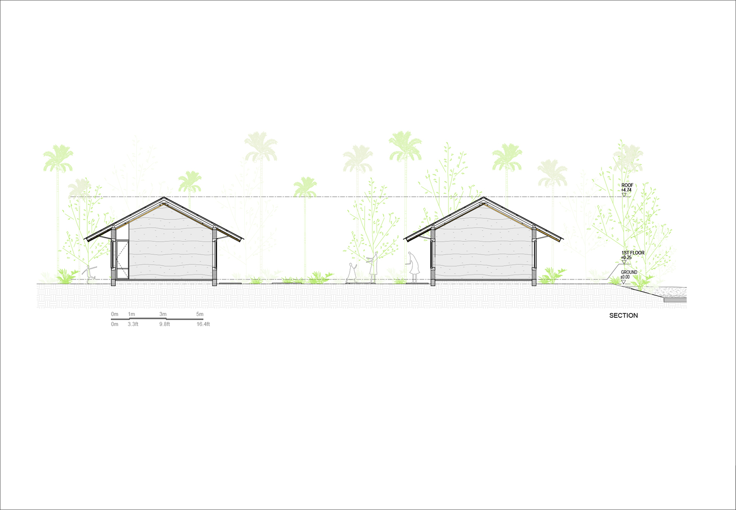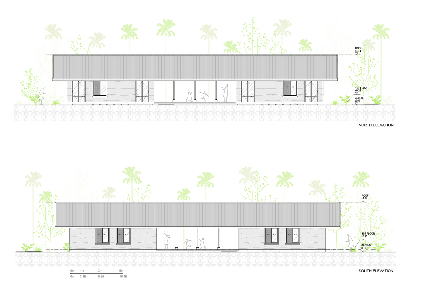This configuration enables effective ventilation, maintaining a comfortable and well-ventilated learning environment suited to the humid tropical climate.