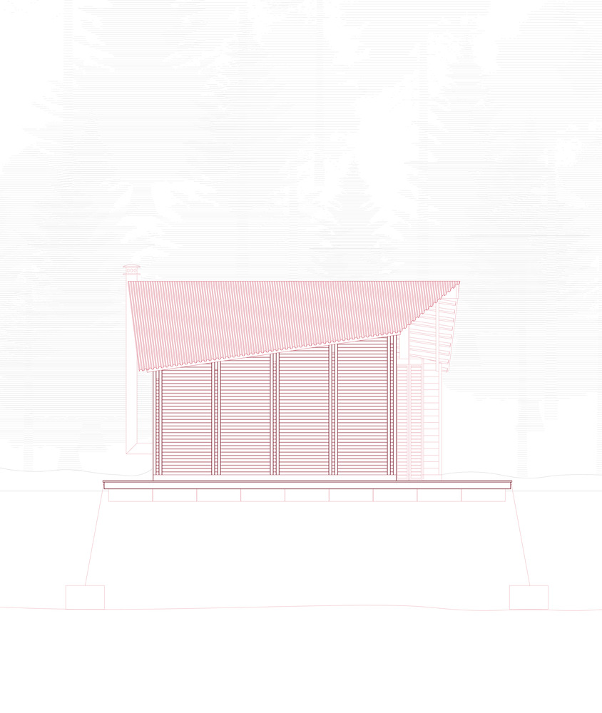 The window was placed deliberately low, framing the lake and the forest beyond. As you climb higher along the three seating levels, your view shifts until, at the top, only the ripples of the lake remain. When materials ran short, necessity guided invention.
