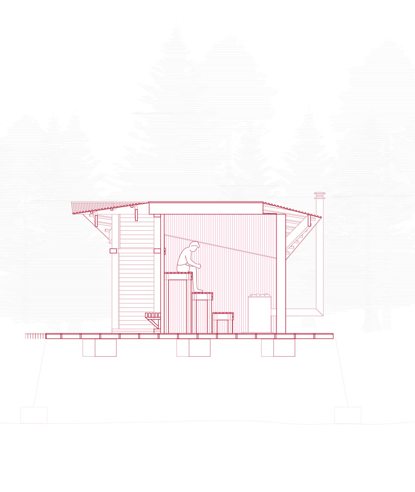 The sauna was designed and built by students over two intense weeks, from first sketches to the finished structure.