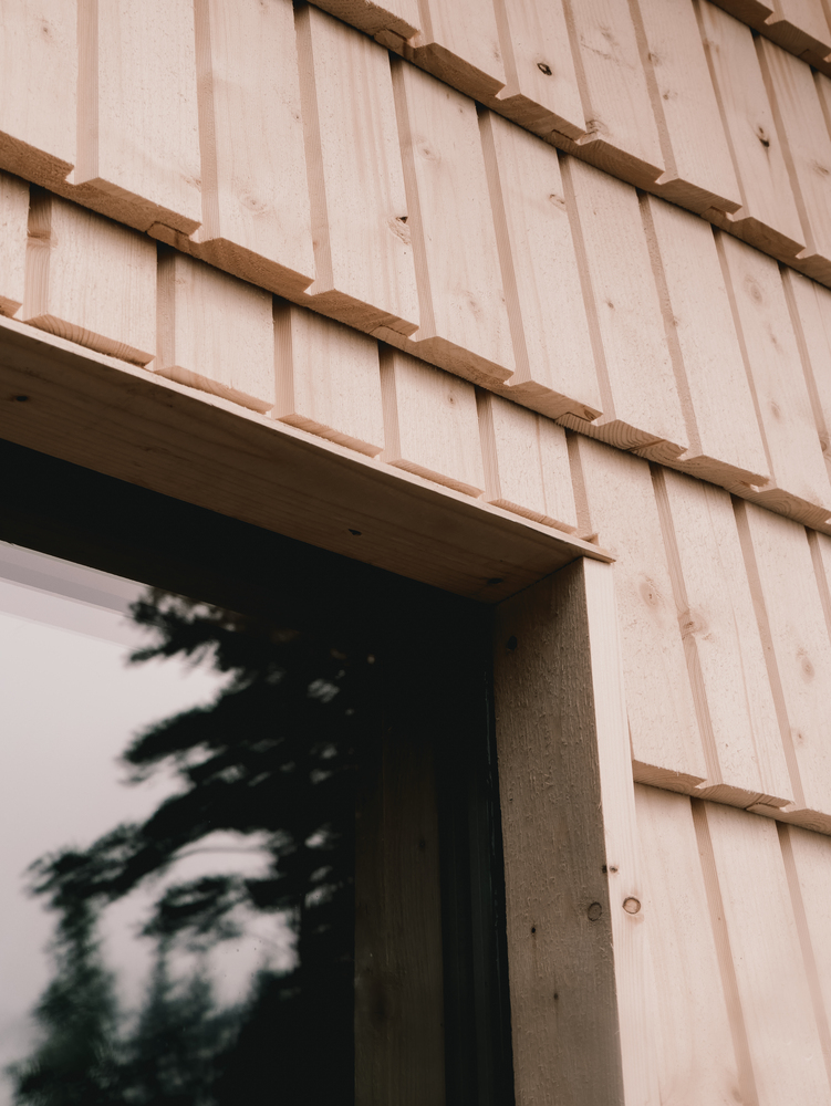 The structure is built entirely from wood and insulated with Low-E material developed for aerospace. An unexpected meeting of vernacular craft and space-age technology.