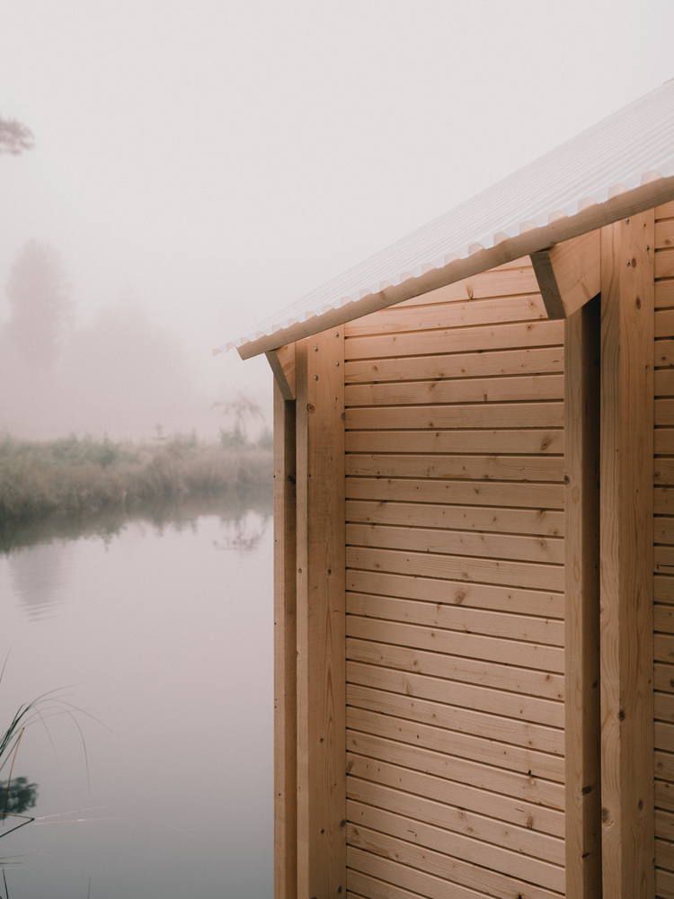 Yet, through that process, something peaceful emerged. A structure that floats lightly on the water, offering shelter, heat, and stillness.