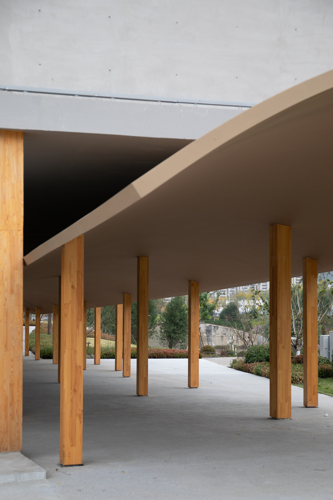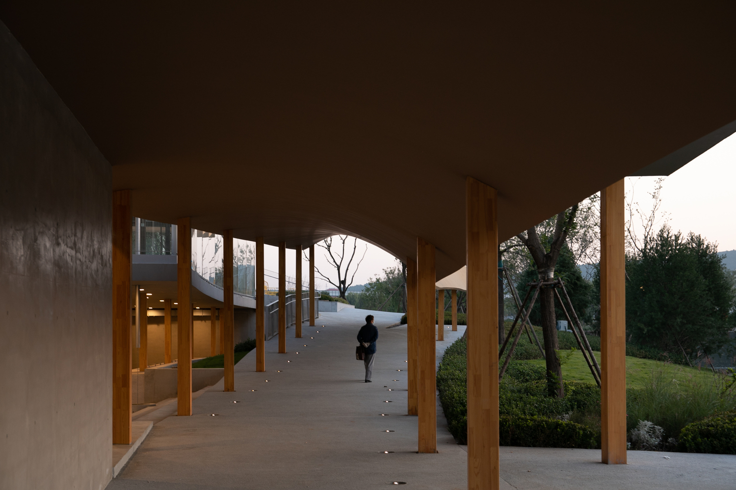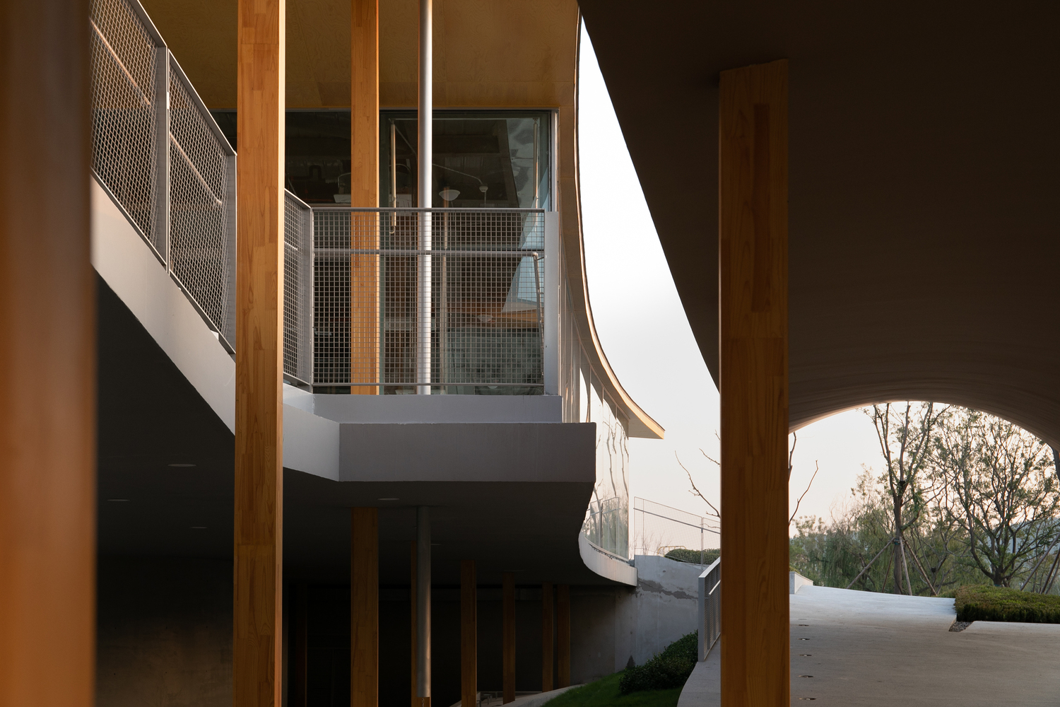 The building's form, shaped by the terrain and its dynamic undulations, generates multiple interlacing flows. These flows serve both as transitional gray-space corridors and functional interior spaces.