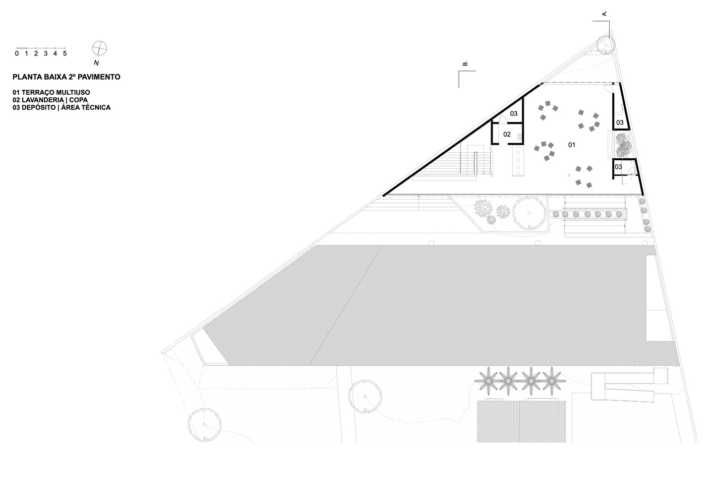 The land, located in the center of the neighborhood, preserves a generous garden and century-old trees, which guided the implementation of the new building.