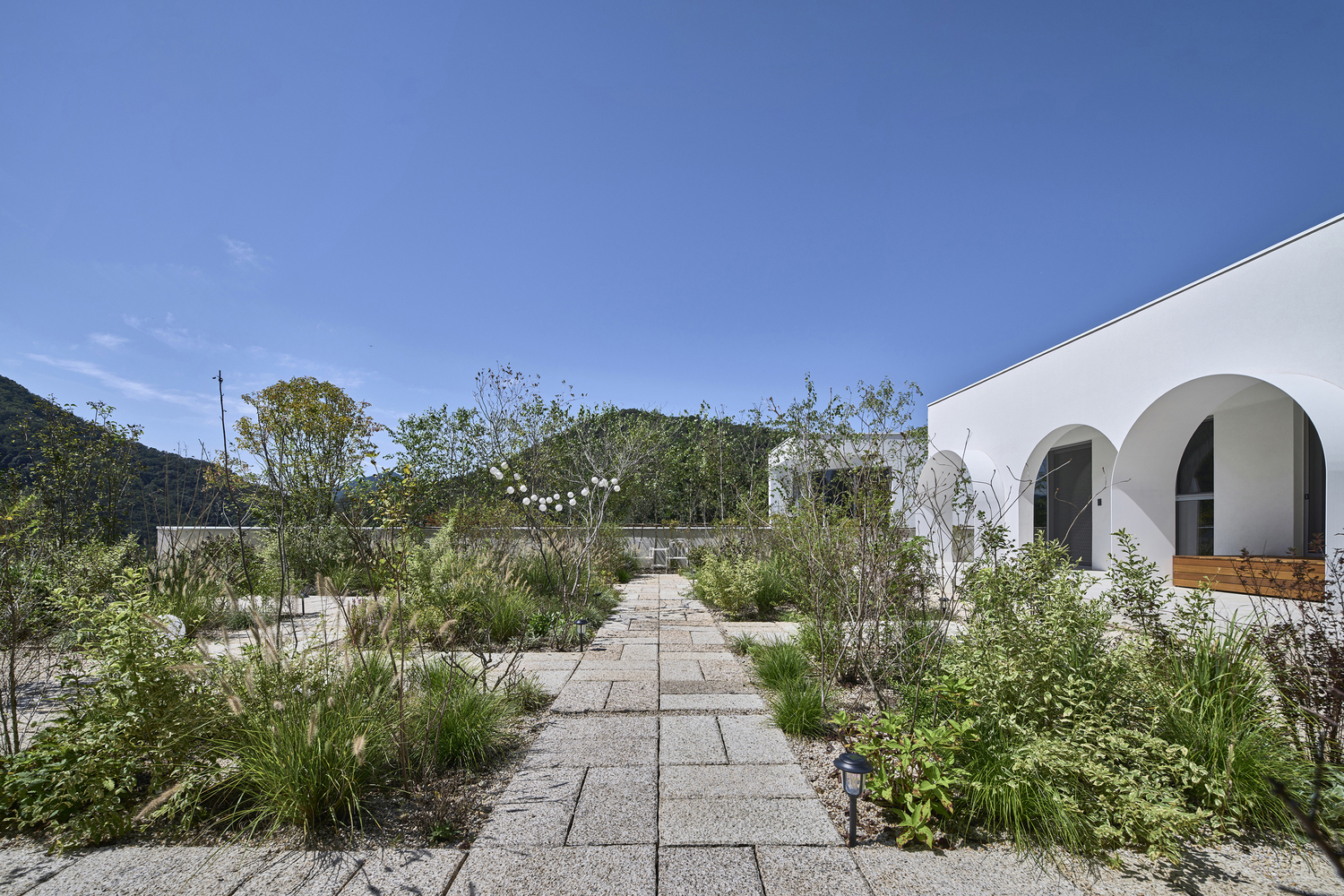 The lower and upper gardens also have special places for Meomum. On the upper level, there is a "Tea House" with the atmosphere of a different space, as if visiting another home. On the lower level, a fire pit is installed for enjoying a fire. Both are places for enjoying and remembering Meomum together, rather than alone.