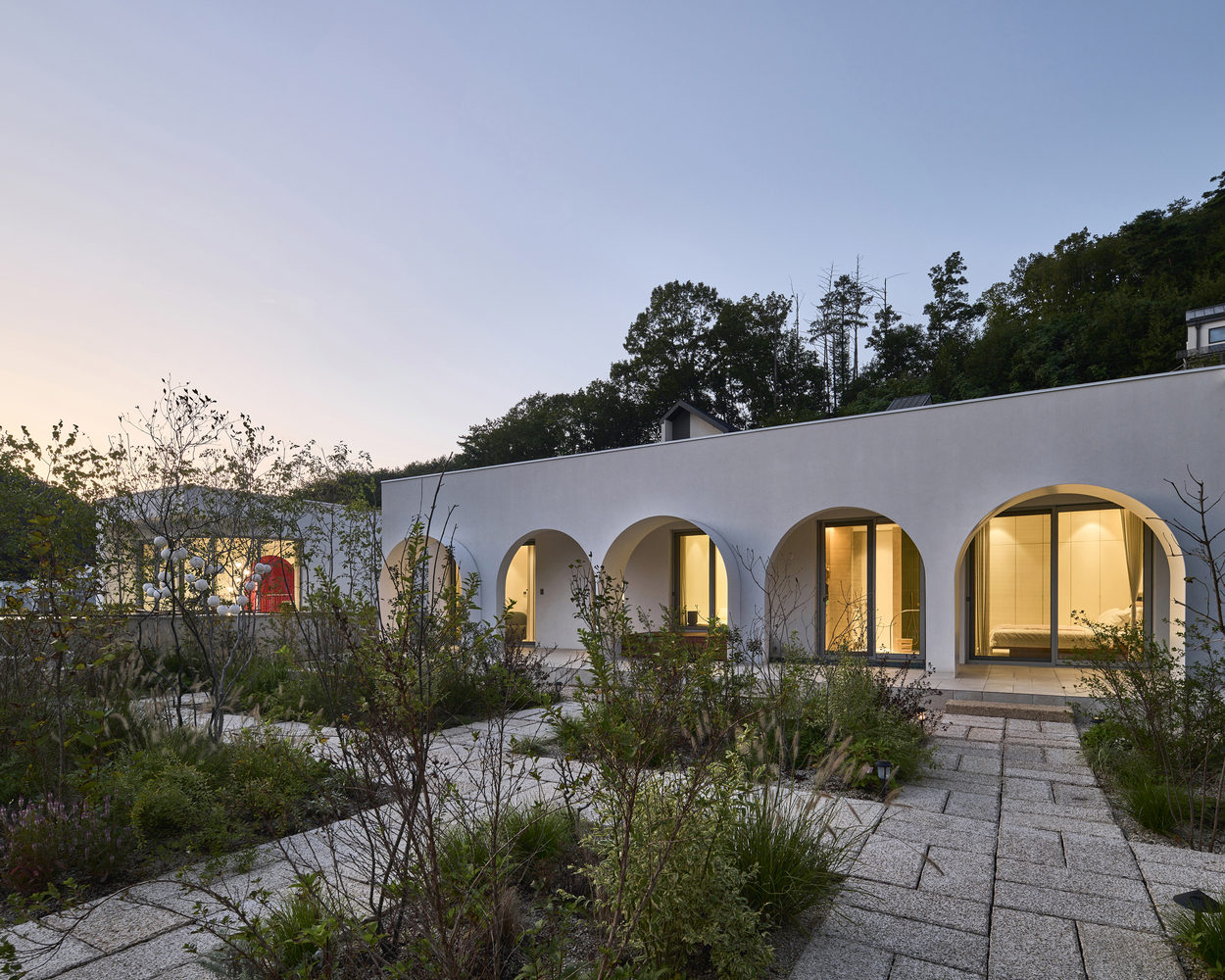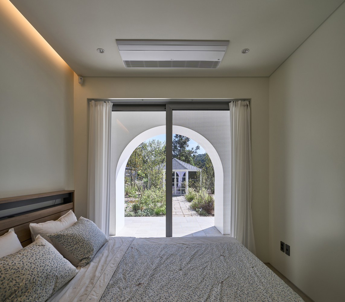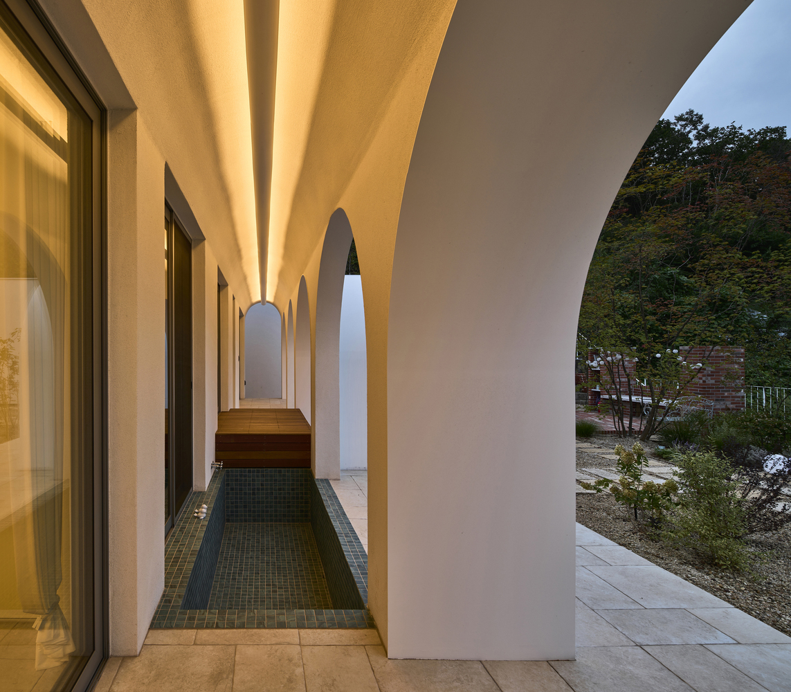 At midday, the southern sunlight stays (meomulda) within the arches, filling the house with soft, indirect light. The toenmaru (a narrow wooden porch) of the cloister, connected to the rooms, is a place that extends the lazy stay (meomureum) of the room to the outdoors. A small bathtub is connected next to it, another form of Meomum (the act of staying), a transformation of the toenmaru.