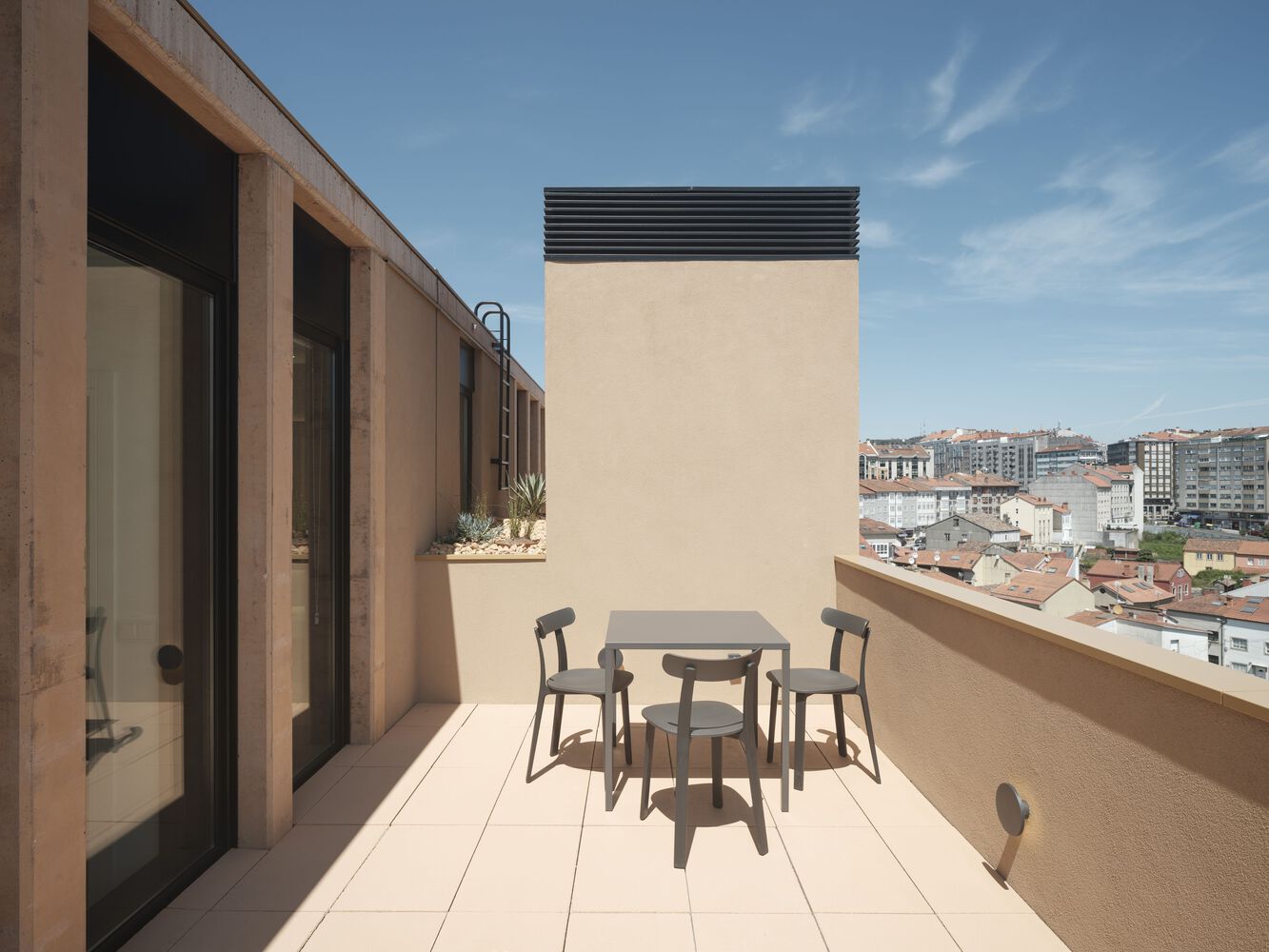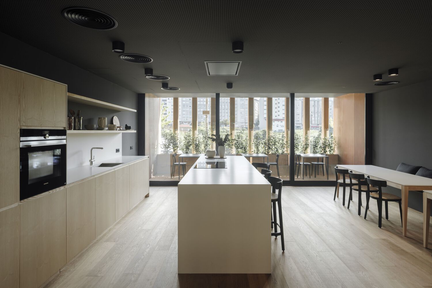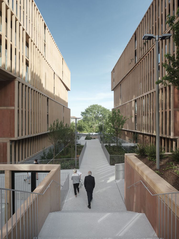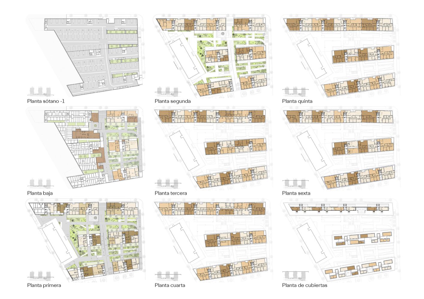 The set is complemented by the provision of a transversal passage through the buildings that frees up the transversal views and decompresses the space between buildings.