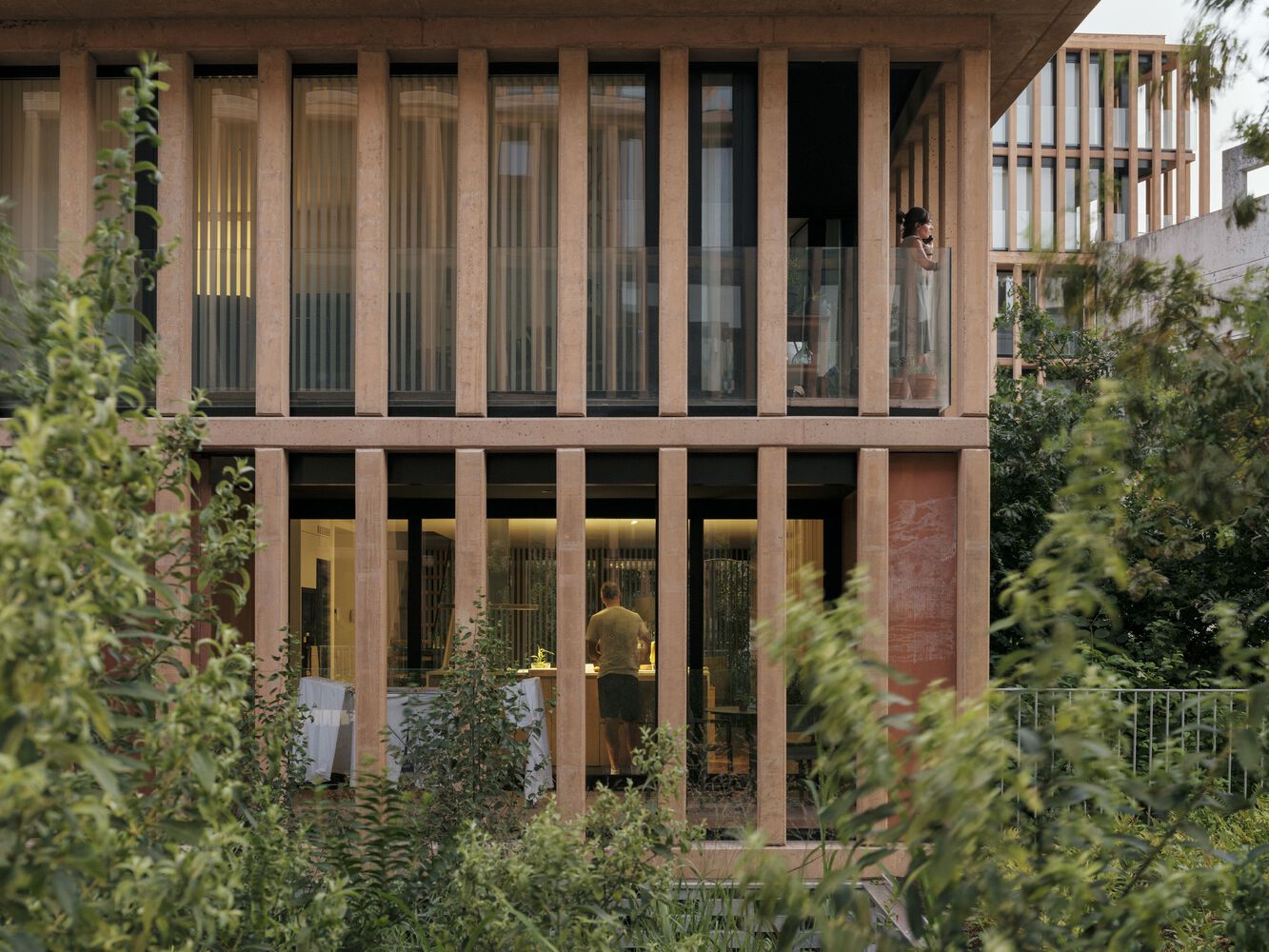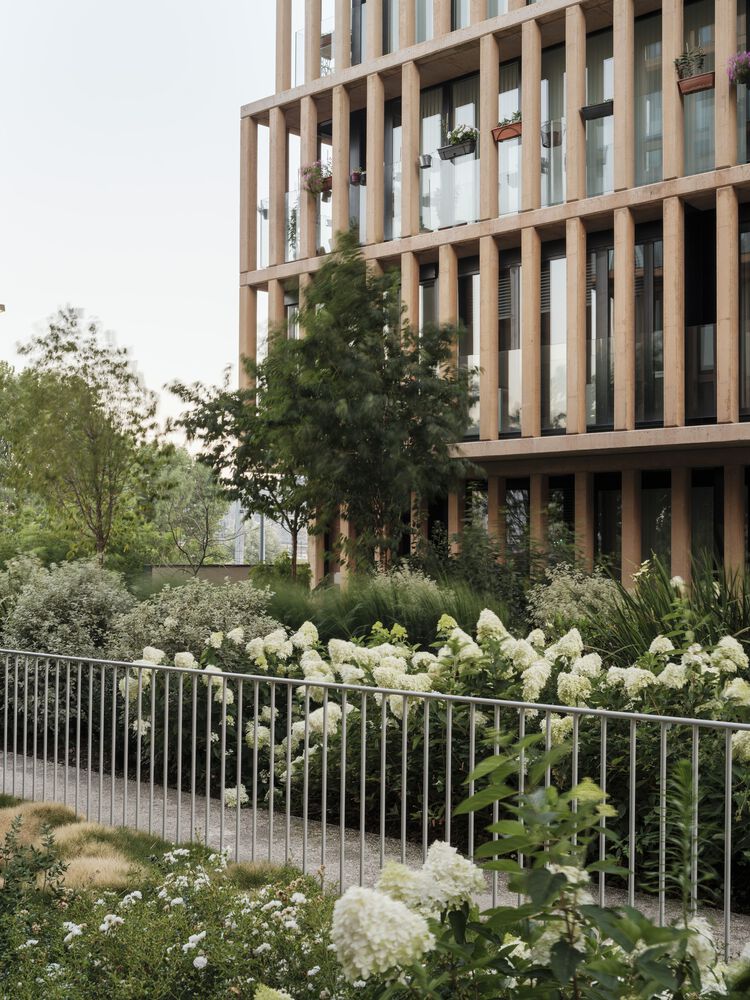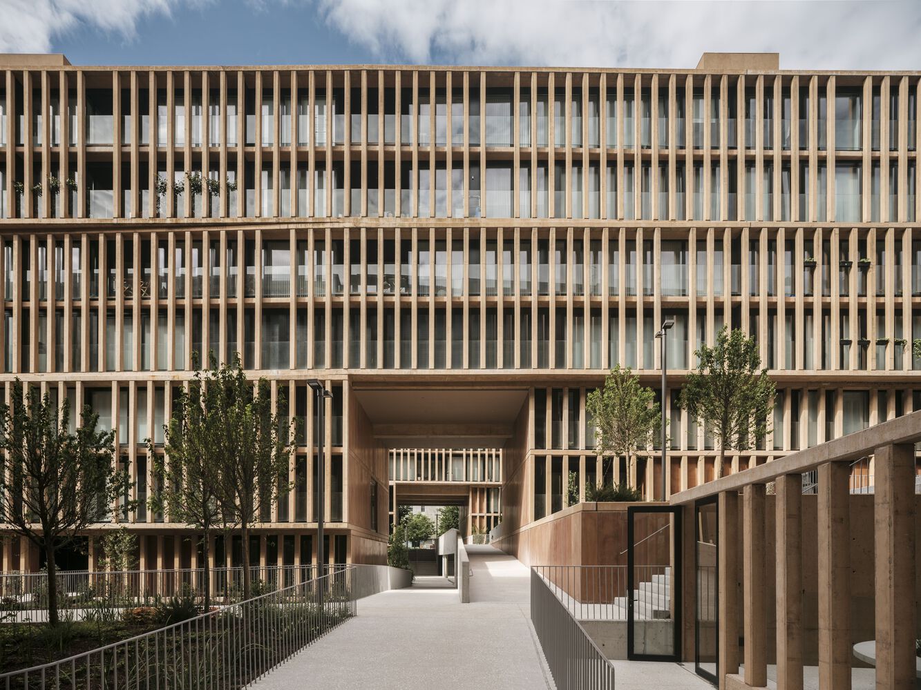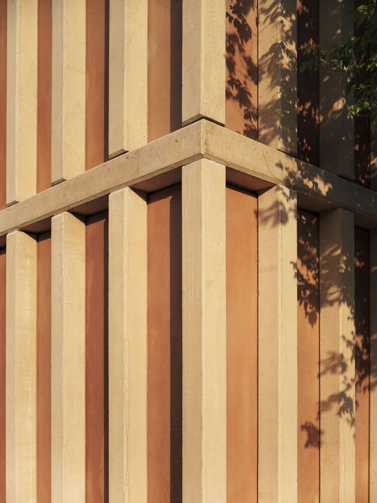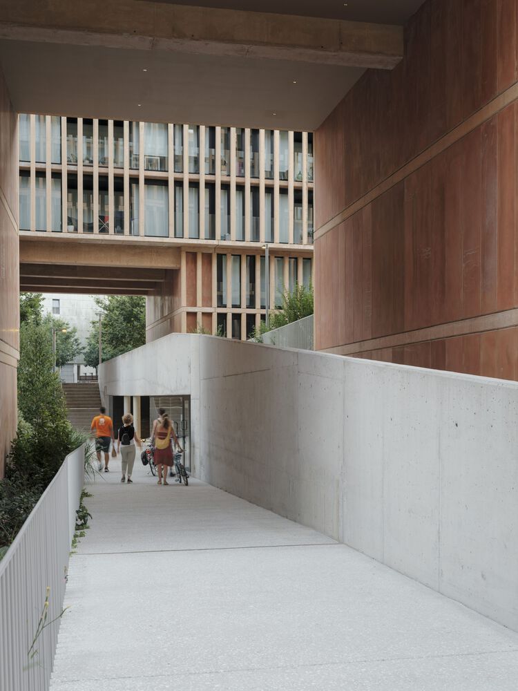 A series of voids are incorporated into this space towards the floors below ground level, allowing the facades to be "distanced" from the apartments and enabling the incorporation of larger trees and natural ventilation and lighting of the spaces for garages and storage rooms.