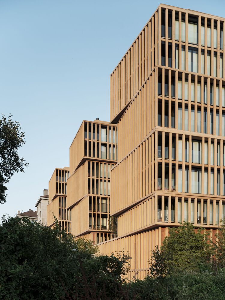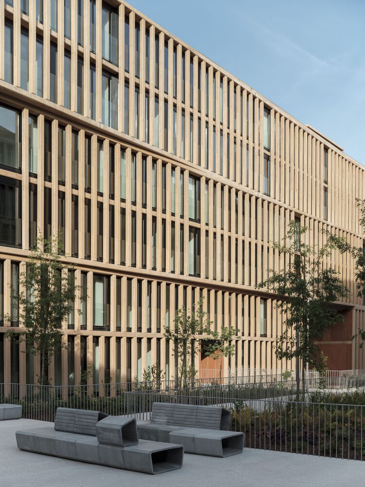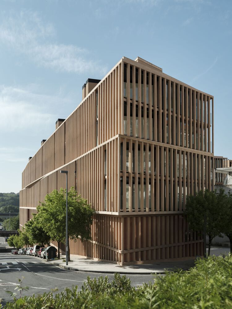 Given the resounding geometry inherited from the urban planning of the area, the floors were unified in sets of two slabs to minimize the scale of the facades.