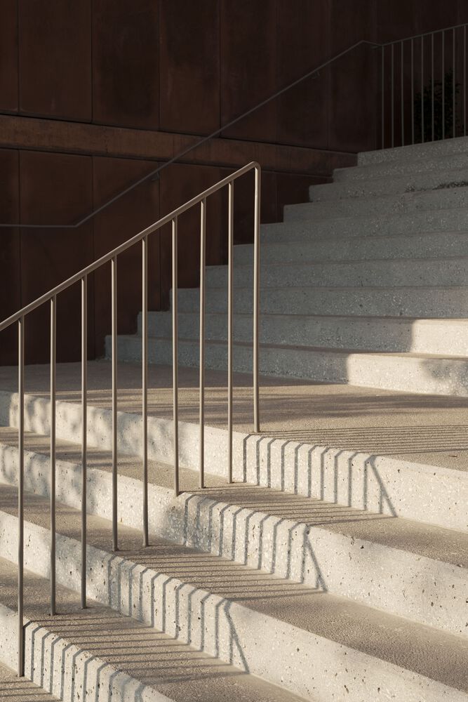 Finally, the tinting of the concrete envelope was chosen to prevent the buildings from being diluted in the surrounding monochrome background and giving them a ferruginous color that recalls the industrial character of the original building, now converted into a beacon approaching the southwest façade of the Compostela expansion.