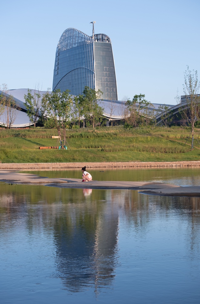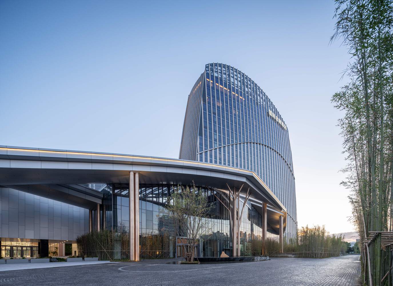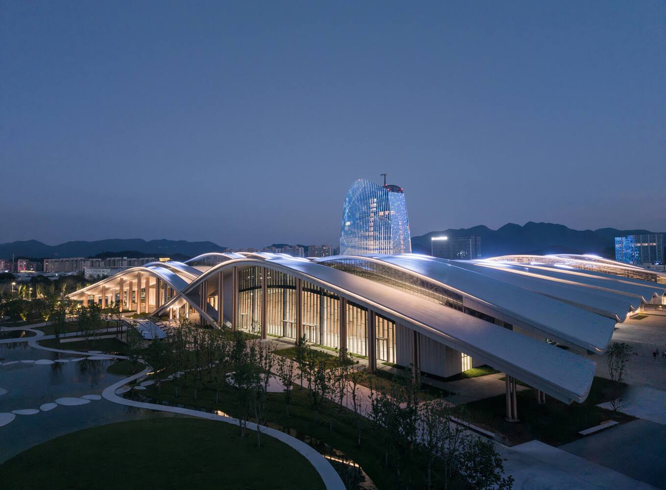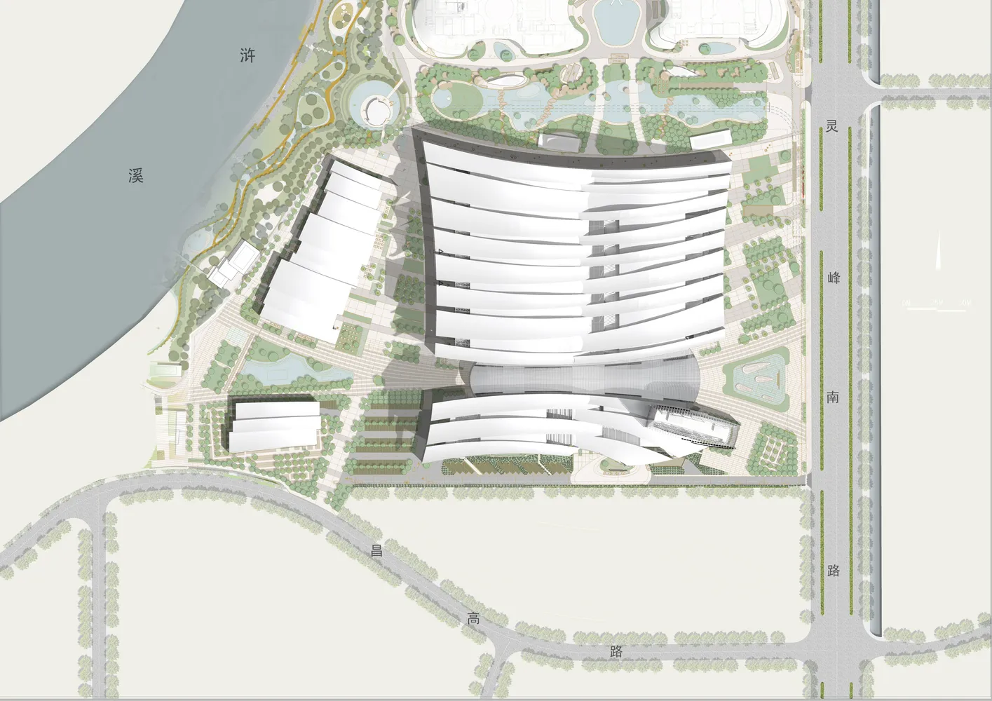 With lines reminiscent of natural landscapes, it extends organically, creating a landmark that seamlessly integrates with the environment and the urban character of Anji.