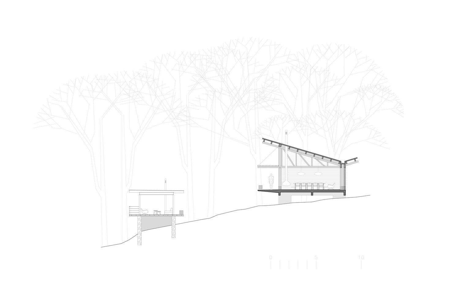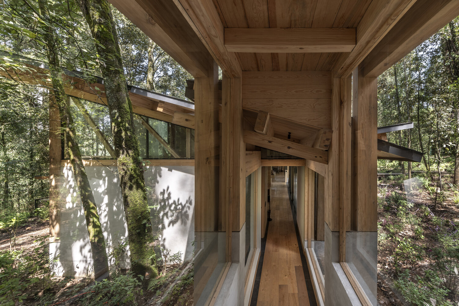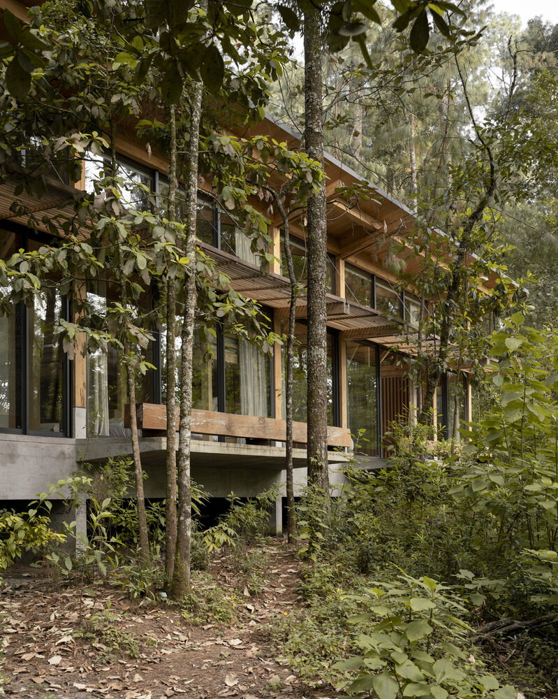 The design of the house responds to an essential premise: to adapt to the forest, not the other way around. All existing trees were preserved, and in addition, 12 new species were planted to revitalize the ecosystem.
