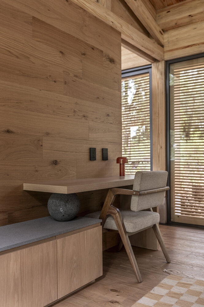 On a 10,000 m² plot surrounded by trees reaching 30 meters in height, the project emerges as a reinterpretation of the traditional cabin, designed to disconnect from urban routines and create a deep connection with the natural environment and family.
