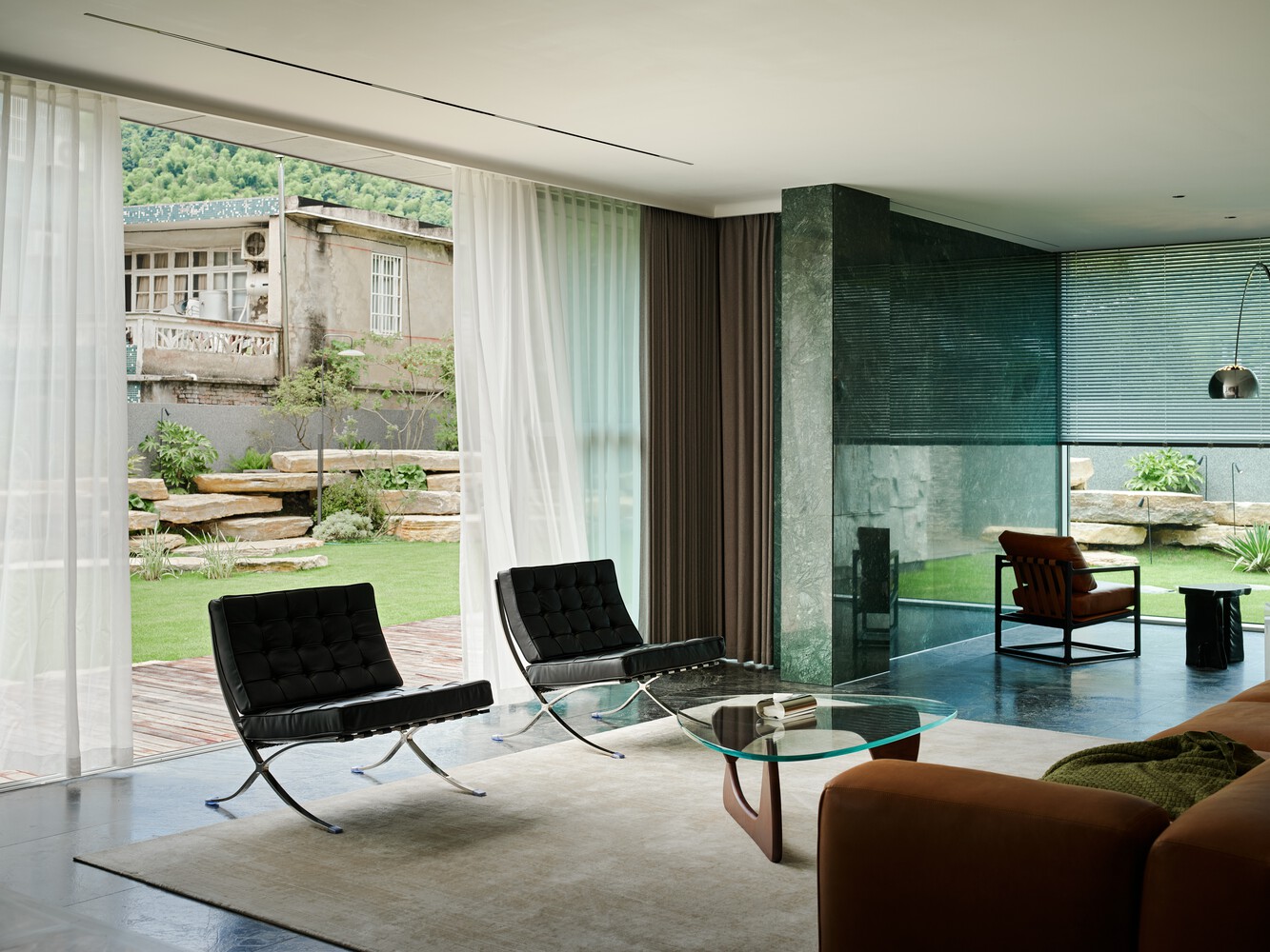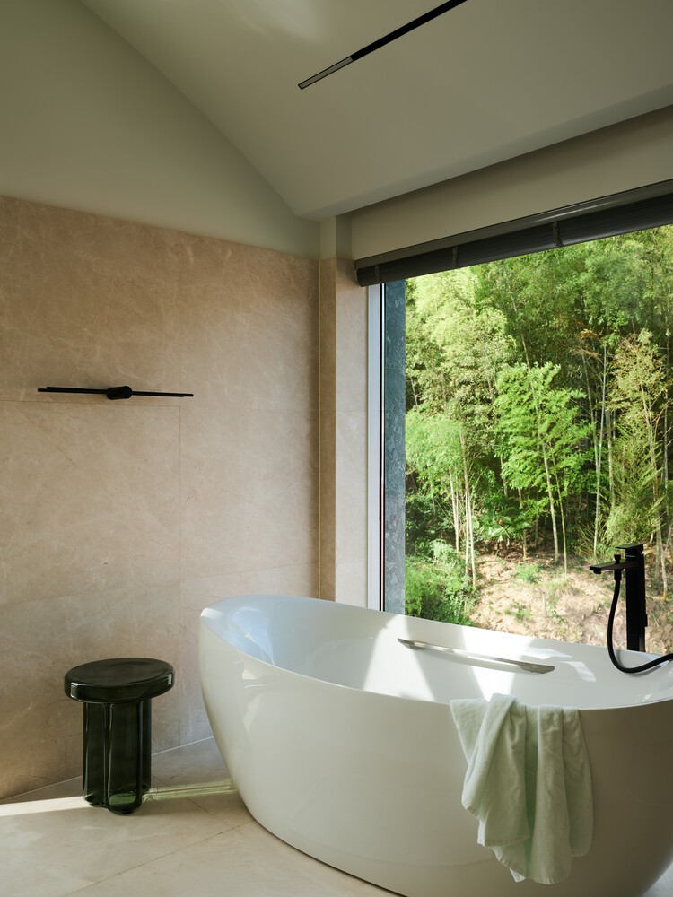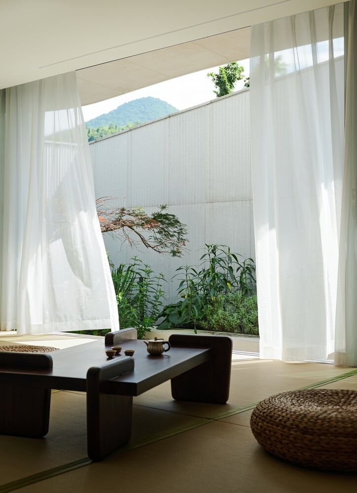 Beyond the property boundaries, the design carefully frames external vistas of Xiaye Temple, bamboo groves, and distant mountains, integrating the broader context into the daily experience of the home.