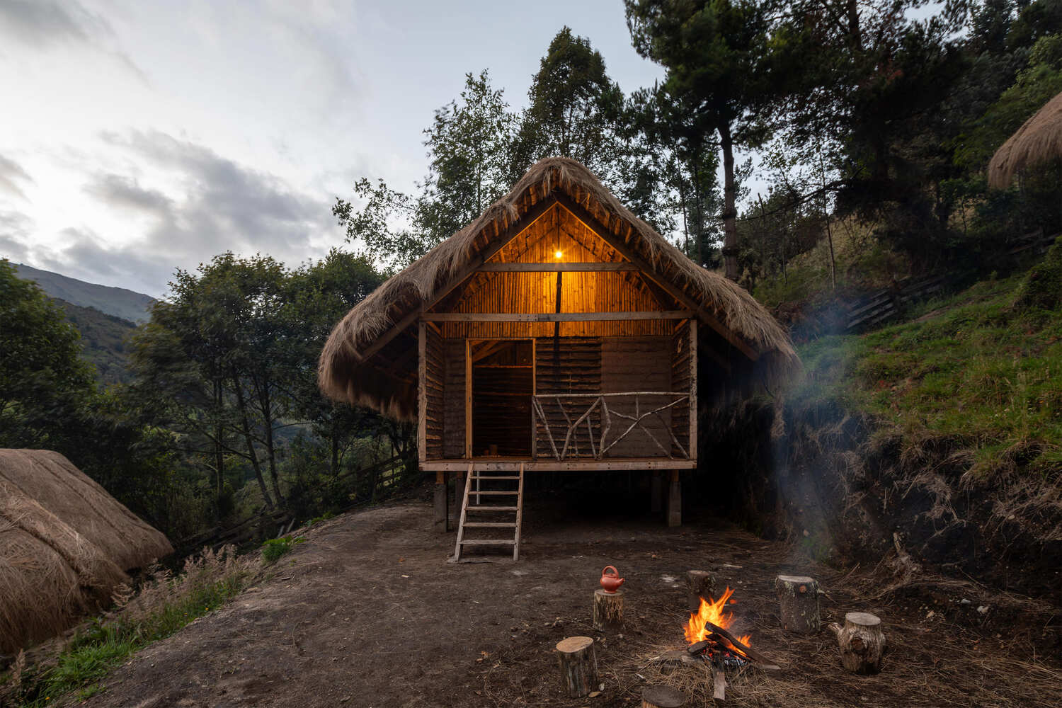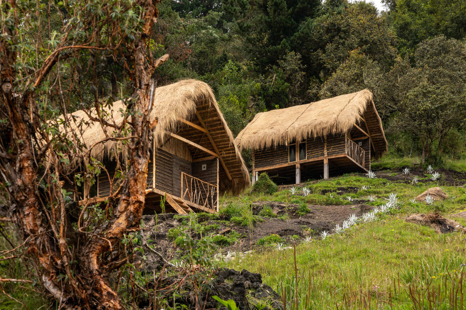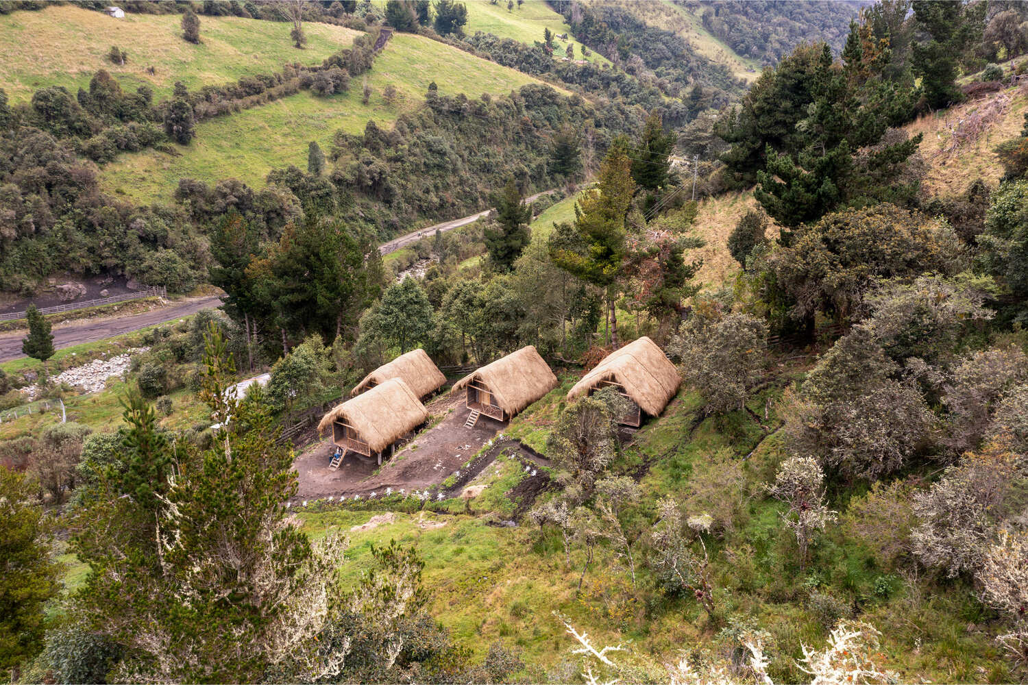 The structures are strategically placed on the mountain to take advantage of the Andean landscape, the songs of the birds, and the sounds of the springs, thereby generating sensations unique to the moor.