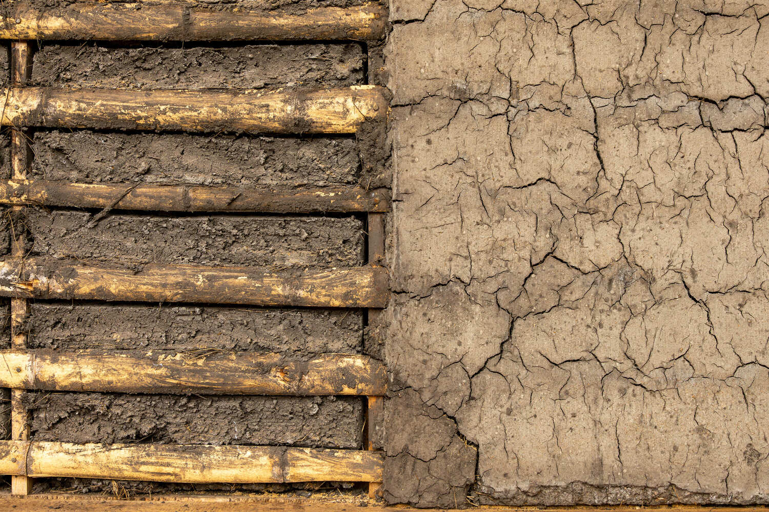 Prefabricated wattle and daub panels were developed, reducing execution time and wall thickness while maintaining thermal comfort.