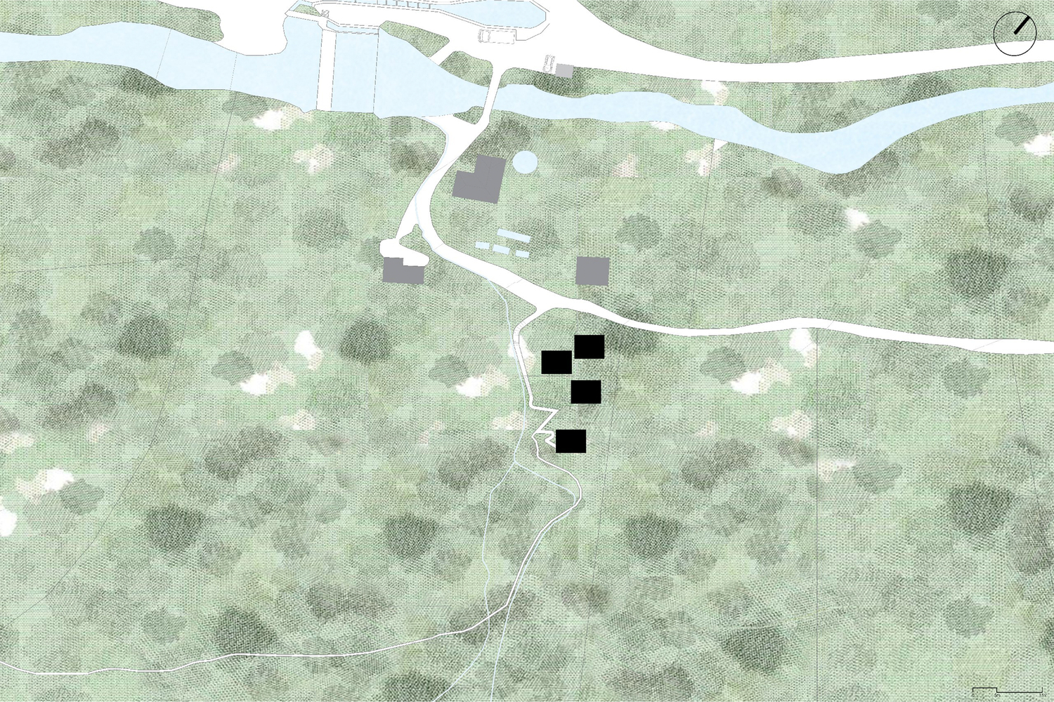 The accommodation modules are situated on the communal land of the association, which features quite irregular topography.