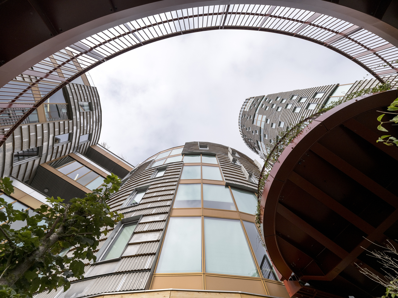 These three rounded towers rise from a tight site, their soft geometry maximizing daylight and creating a sculptural presence on the waterfront.