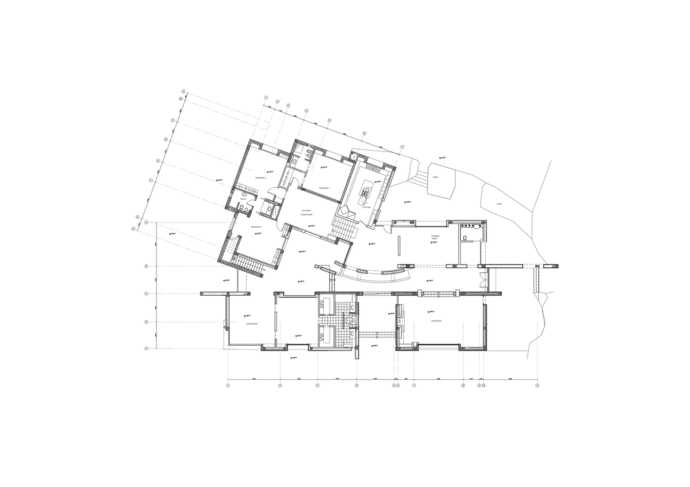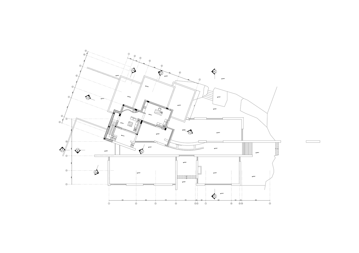 This context-minded scheme, through the harmonious integration with the surrounding terrain and foliage, and the incorporation of both local stone-sheathed and plastered surfaces, culminates in a weightless form; yet, a silent presence.