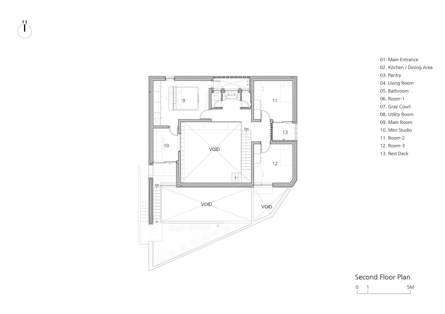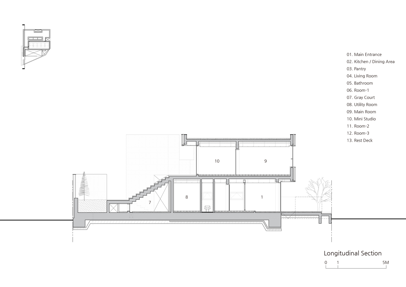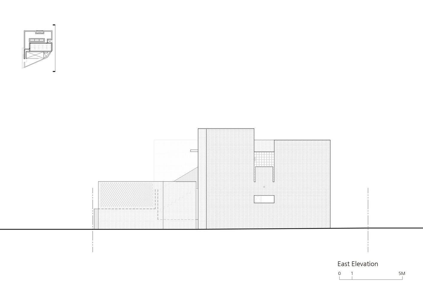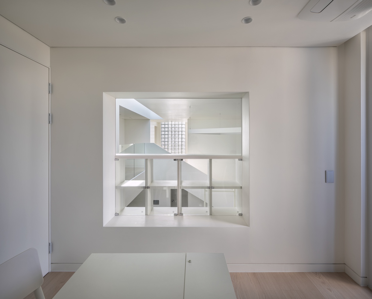For residents who care about privacy, the front has a raised garden to serve as a visual screen, and slits were installed in different areas to offset the feeling of pressure from heightened boundary walls. The slits appear in different scales between masses of different heights, walls, internal corners, and building elements to function as a passage for light and air and as a tool for controlling the living environment.