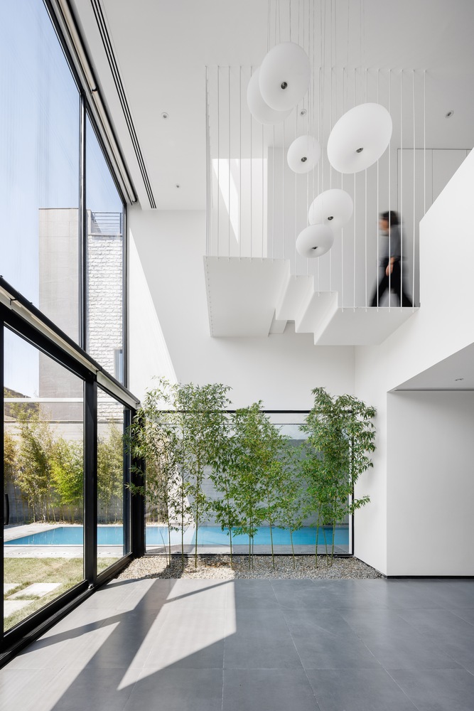Two strategies enrich the project's spatial and experiential qualities: "stitching the courtyards" through independent exterior paths that encourage open-air circulation and "shading" through a perforated skin that casts layered shadows, shapes the atmosphere, and provides a supportive structure for climbing plants.