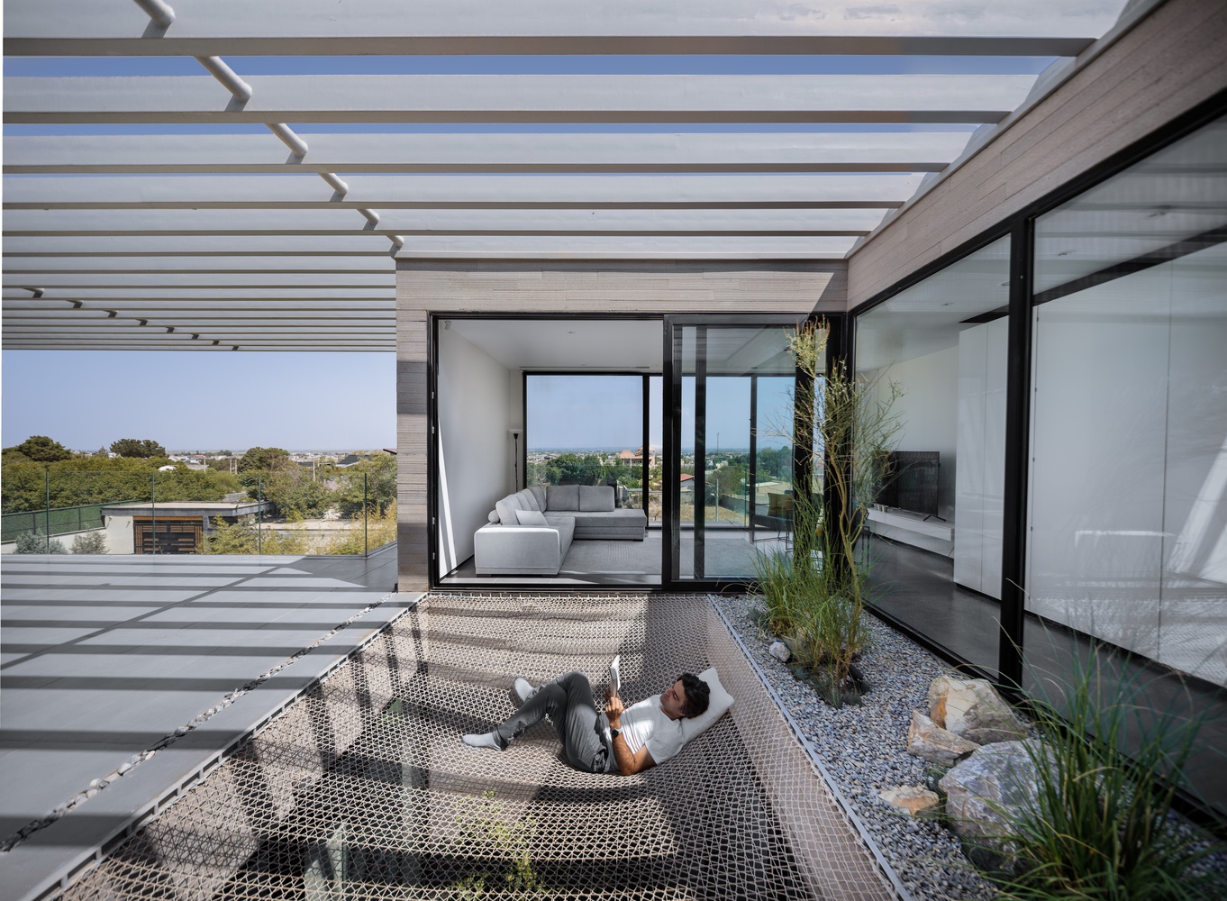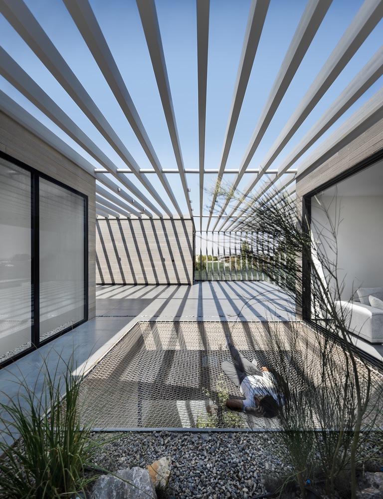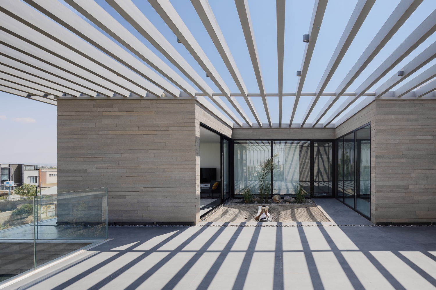 Villa No. 13 is conceived around the interplay of open, semi-open, and enclosed spaces—a spatial composition structured by three exterior courtyards and an interior patio that together create an intermediary microclimate between inside and outside.