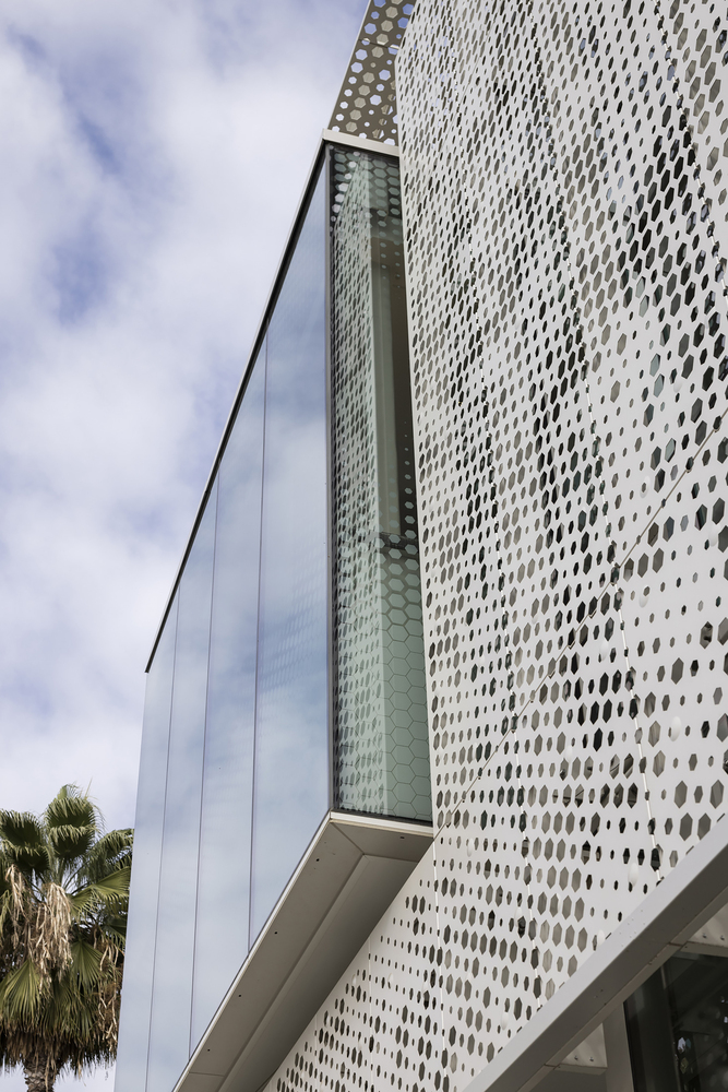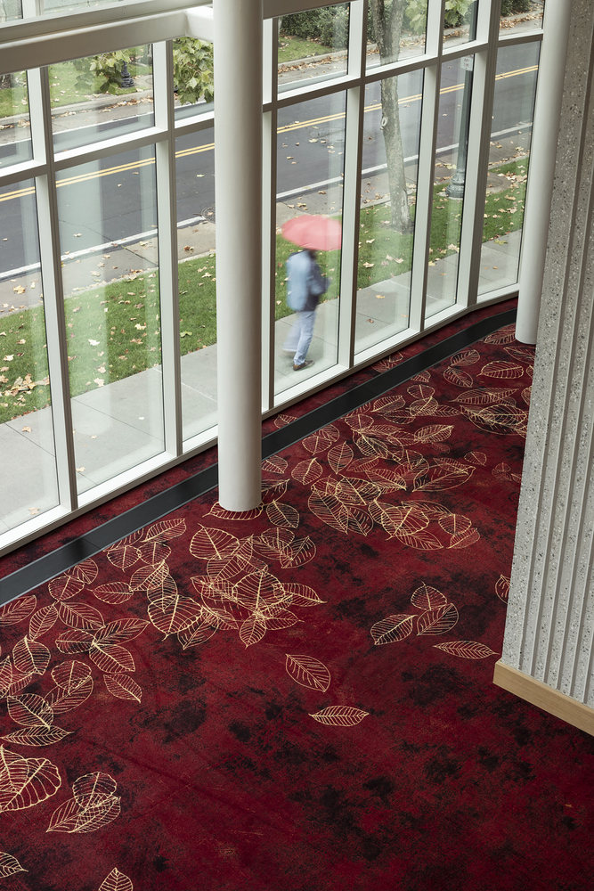 The building is considered wholistically and common concepts of dappled light are re-used throughout in structure, shading, interior materials, and lighting - connecting to the arboretum landscape across the street.