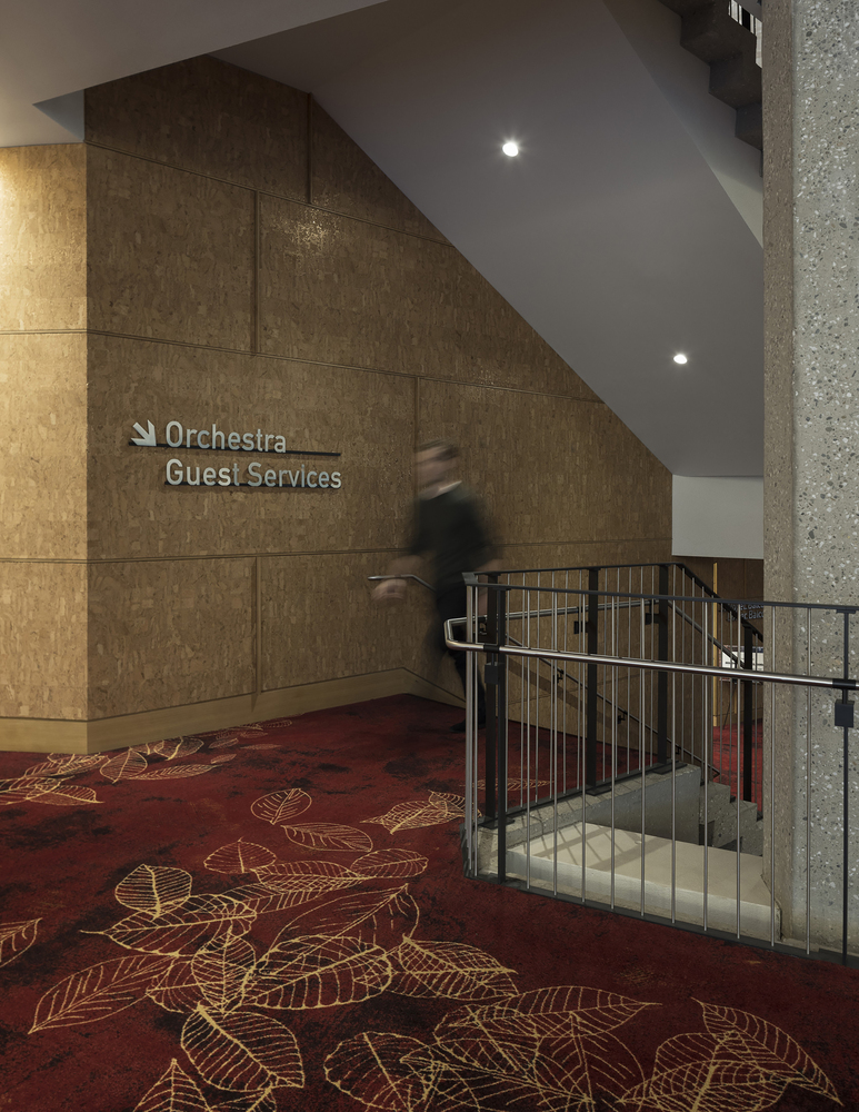 Major renovations to the audience chamber and orchestra pit included the installation of the largest electro-acoustic enhancement system in California, transforming an acoustically poor and visually confusing interior space into a warm, inviting, acoustically superior performance space.