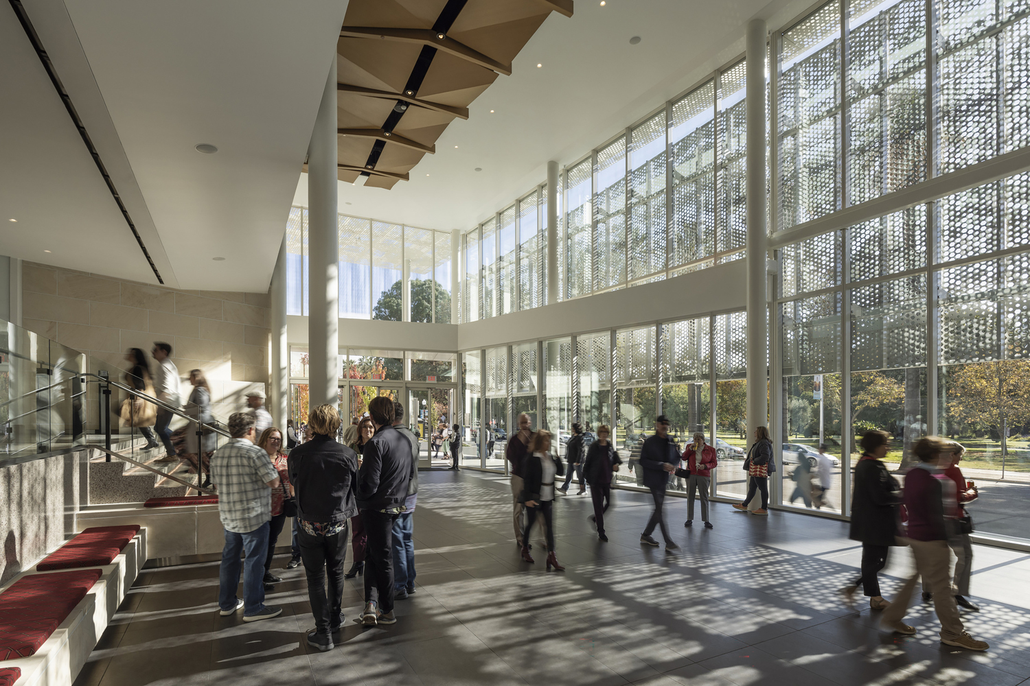 The renovation and expansion open the building to the surrounding urban fabric and bring Sacramento's rich culture of trees into the building.