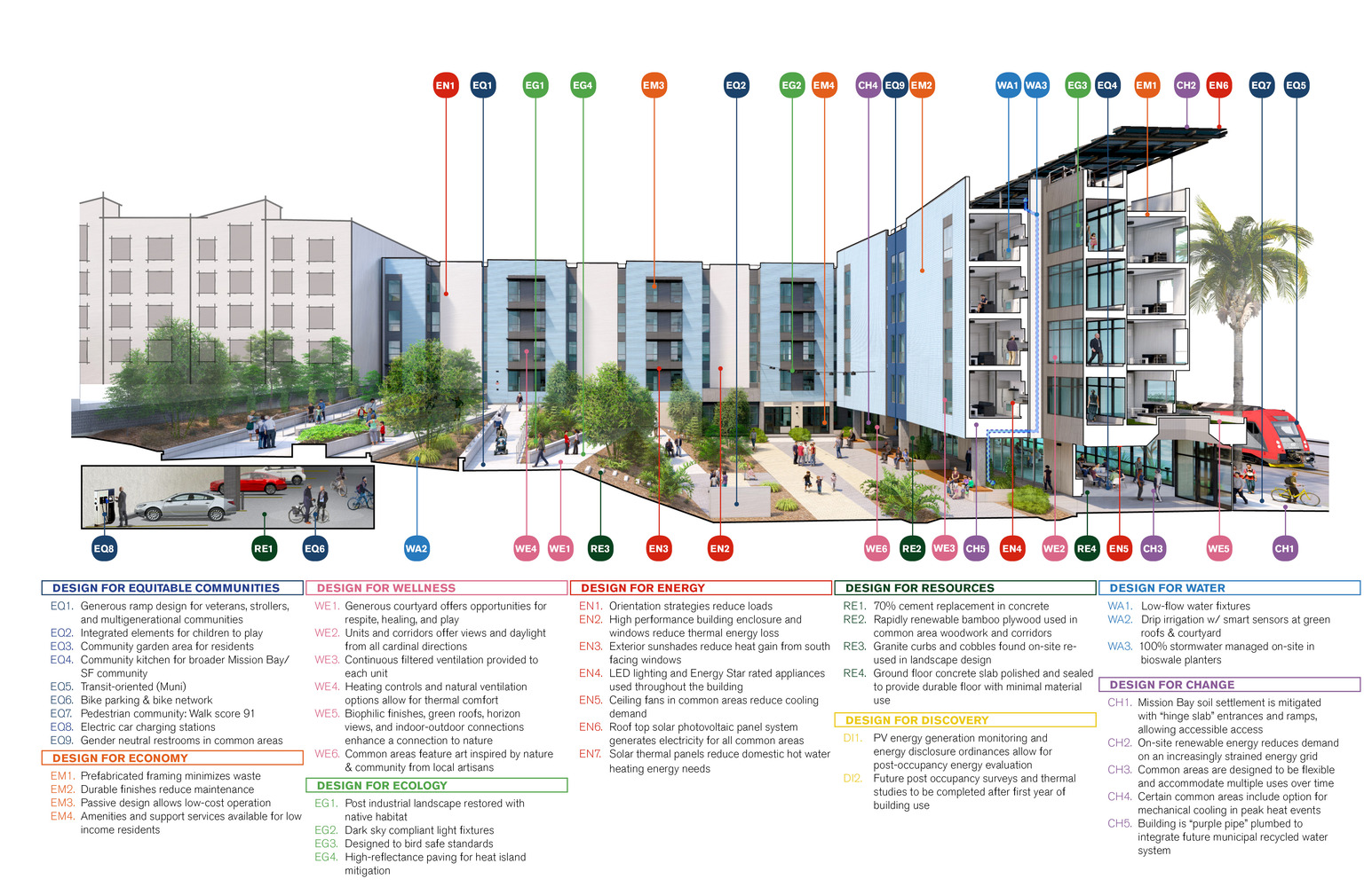 This collaboration—Leddy Maytum Stacy Architects, Saida + Sullivan Design Partners, Swords to Plowshares, and Chinatown Community Development Center—supports an integrated, equitable, and sustainable community in San Francisco's Mission Bay neighborhood.