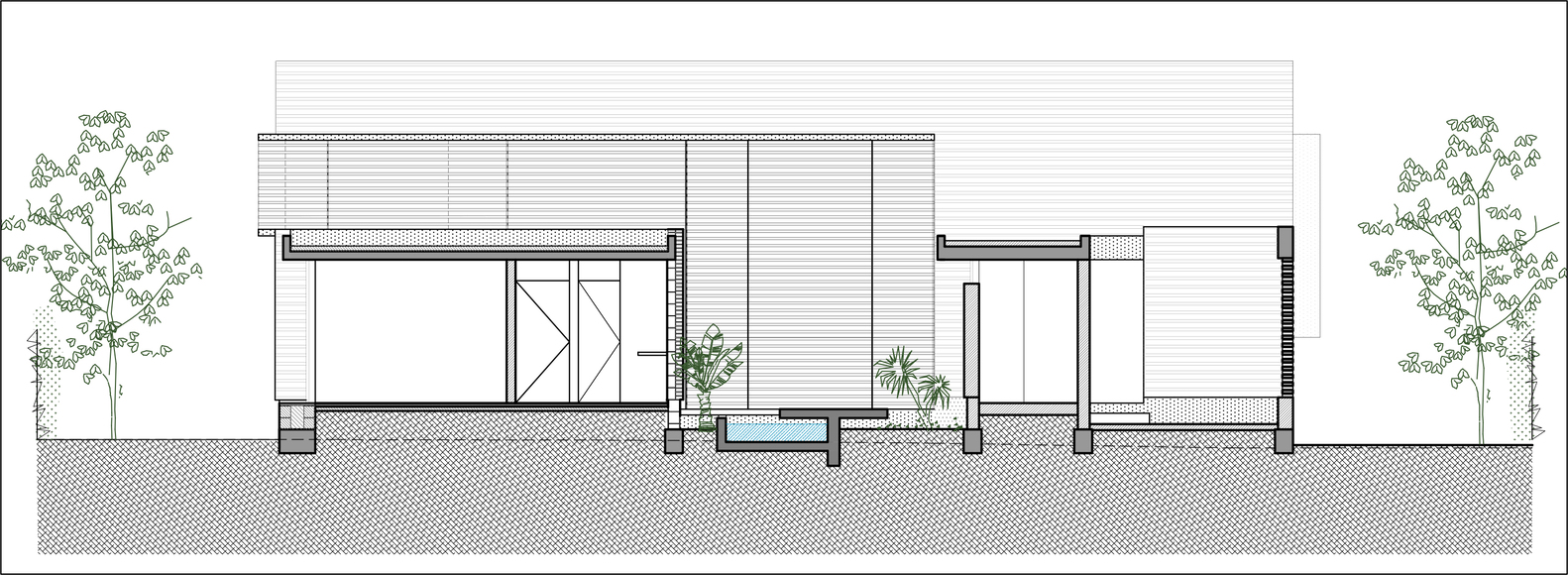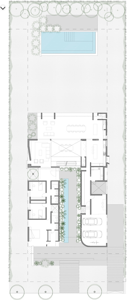 In the pursuit of a continuous and fluid spatiality, we considered the experience of the journey to the home, where we also incorporated water as a symbolic and vital element.