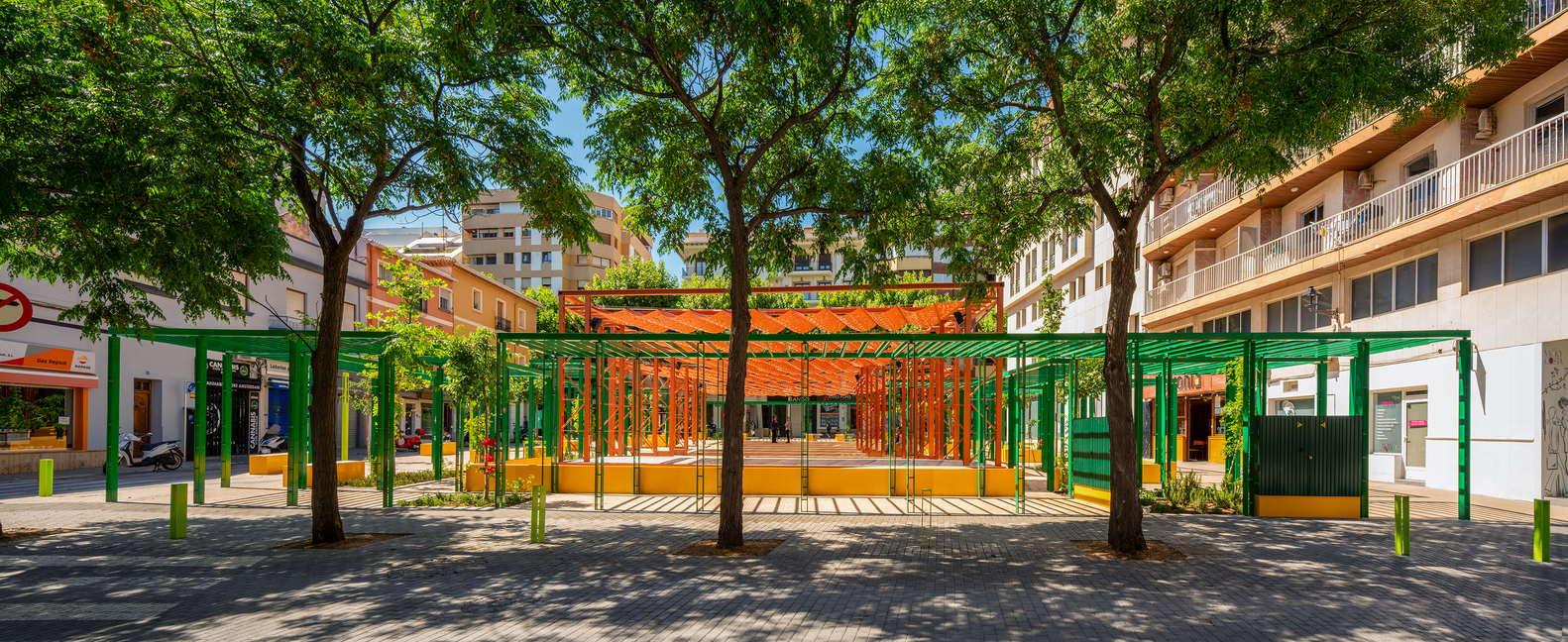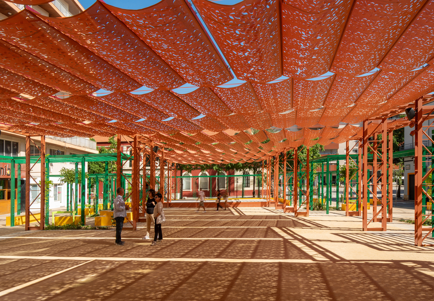 Together, the two pergolas define a microclimatic and social ecosystem, a place where architecture becomes both refuge and stage: a living laboratory that redefines the relationship between public space, environment, and community in the 21st-century Mediterranean city.