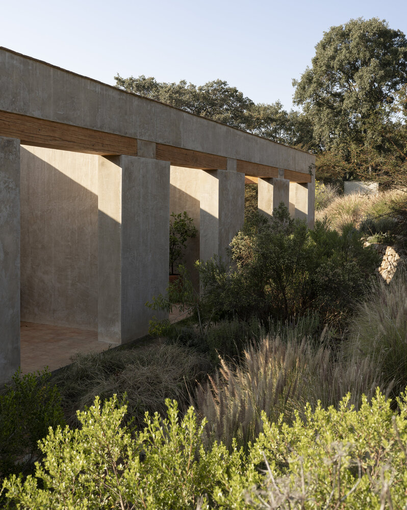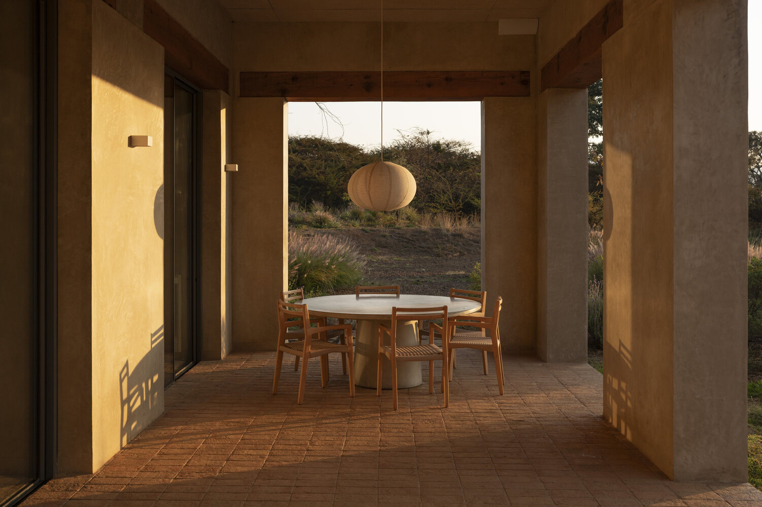A series of staggered walls and large openings along the perimeter provide protection and enclosure, while simultaneously allowing the landscape to flow through the architecture.