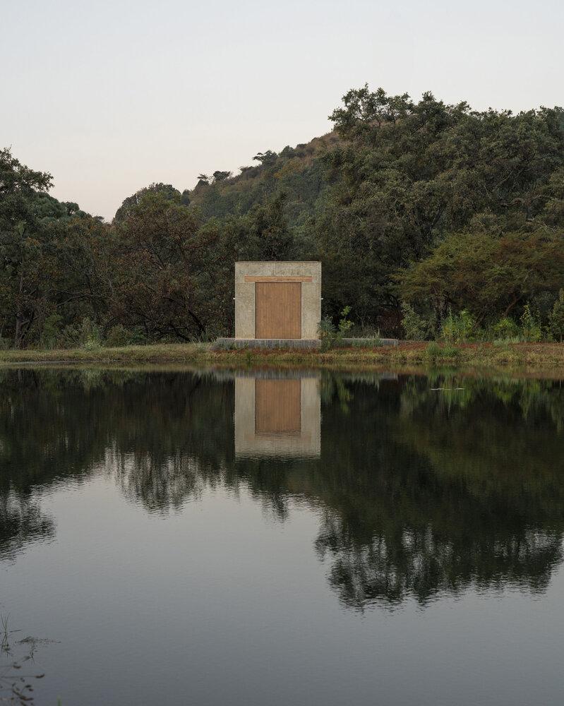 The building doesn't seek to stand out, but rather to disappear among the vegetation, water, and earth, embodying a way of living in harmony with the environment.