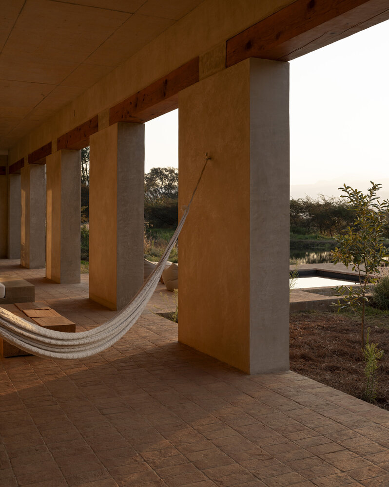 Social and contemplative spaces were prioritized, such as large rooms open to the landscape and areas with hammocks that invite moments of pause and connection with nature.
