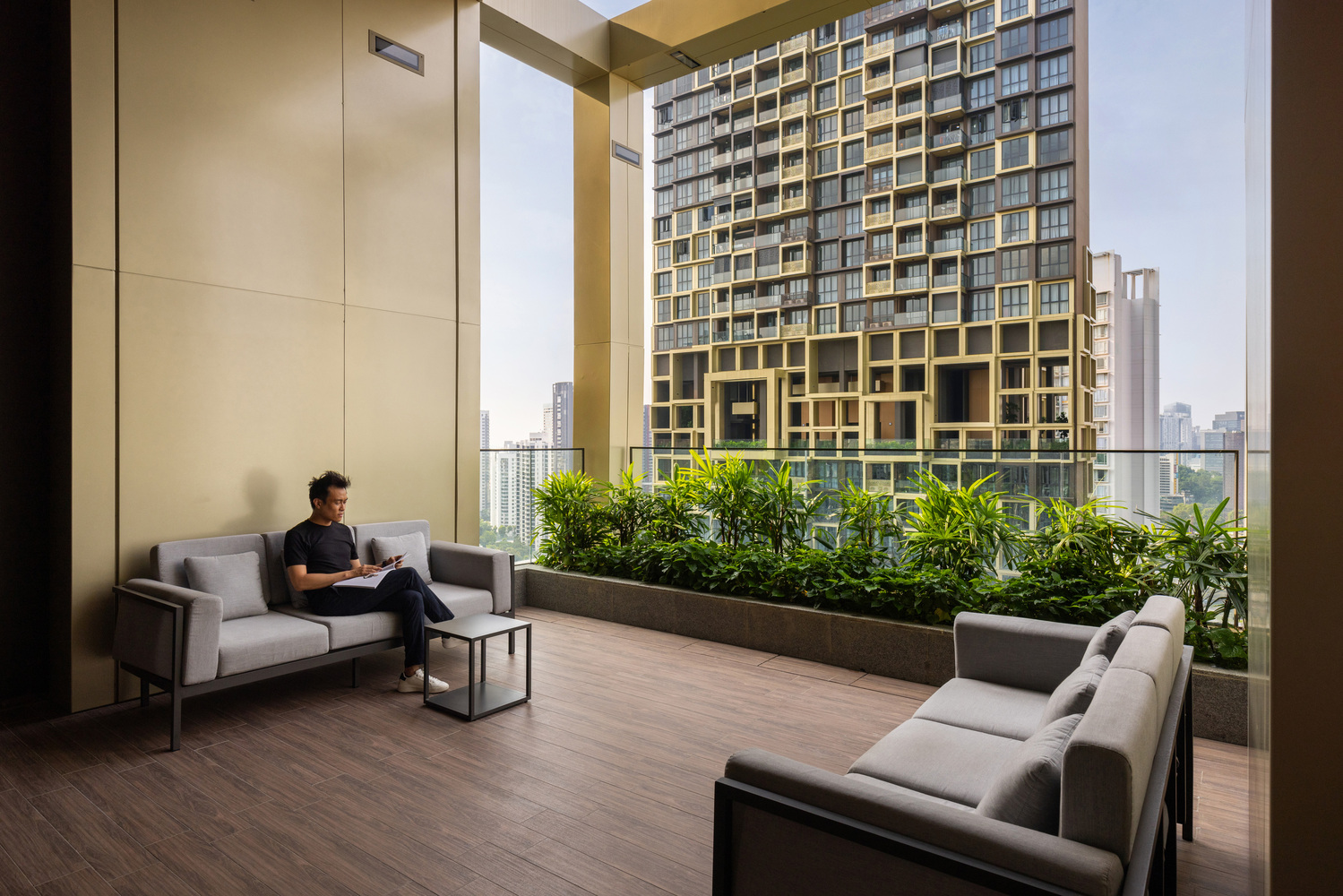 The development was designed by Singapore-based firm ADDP Architects using prefabricated prefinished volumetric construction (PPVC), a type of construction in which entire rooms, including their finished surfaces and facades, are built in a factory and stacked together on site.