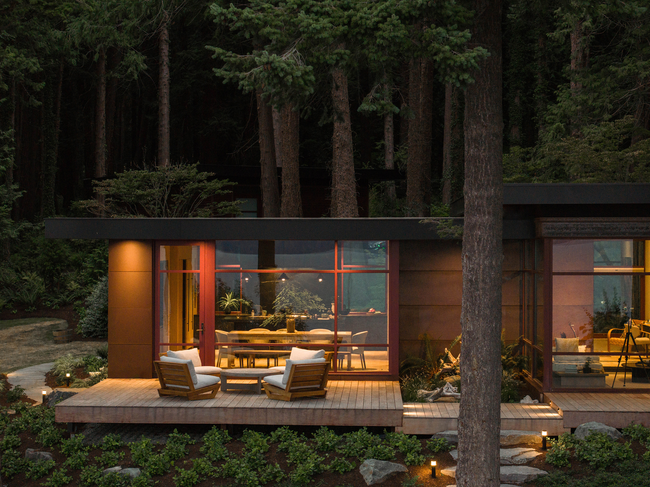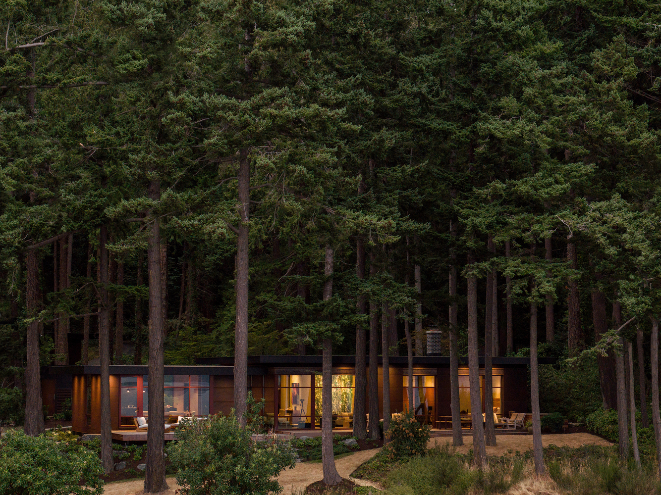 The extension was carefully sited to avoid disturbing the existing trees to strengthen the connection between the horizontality of the house and the towering verticality of the ancient forest.