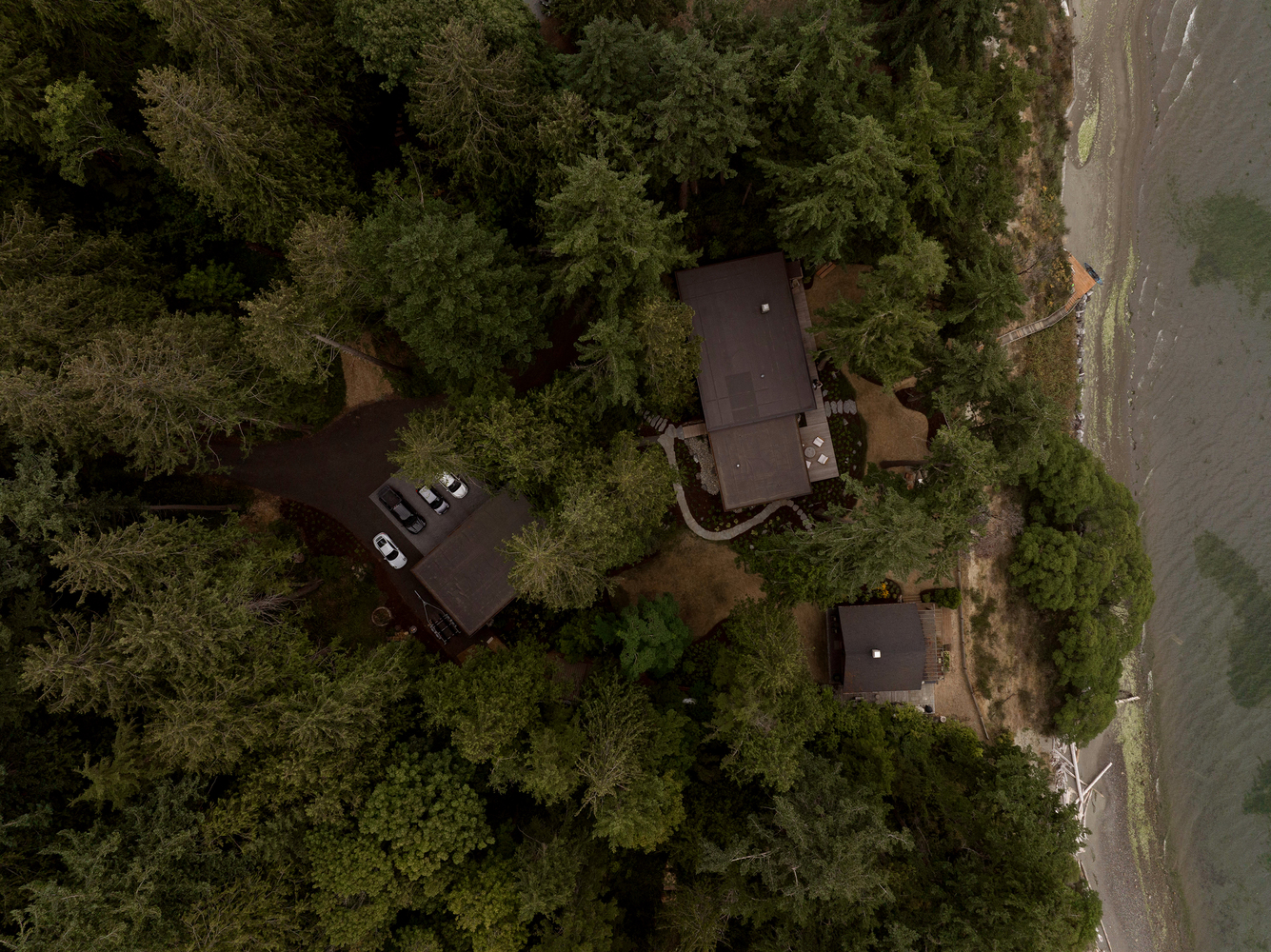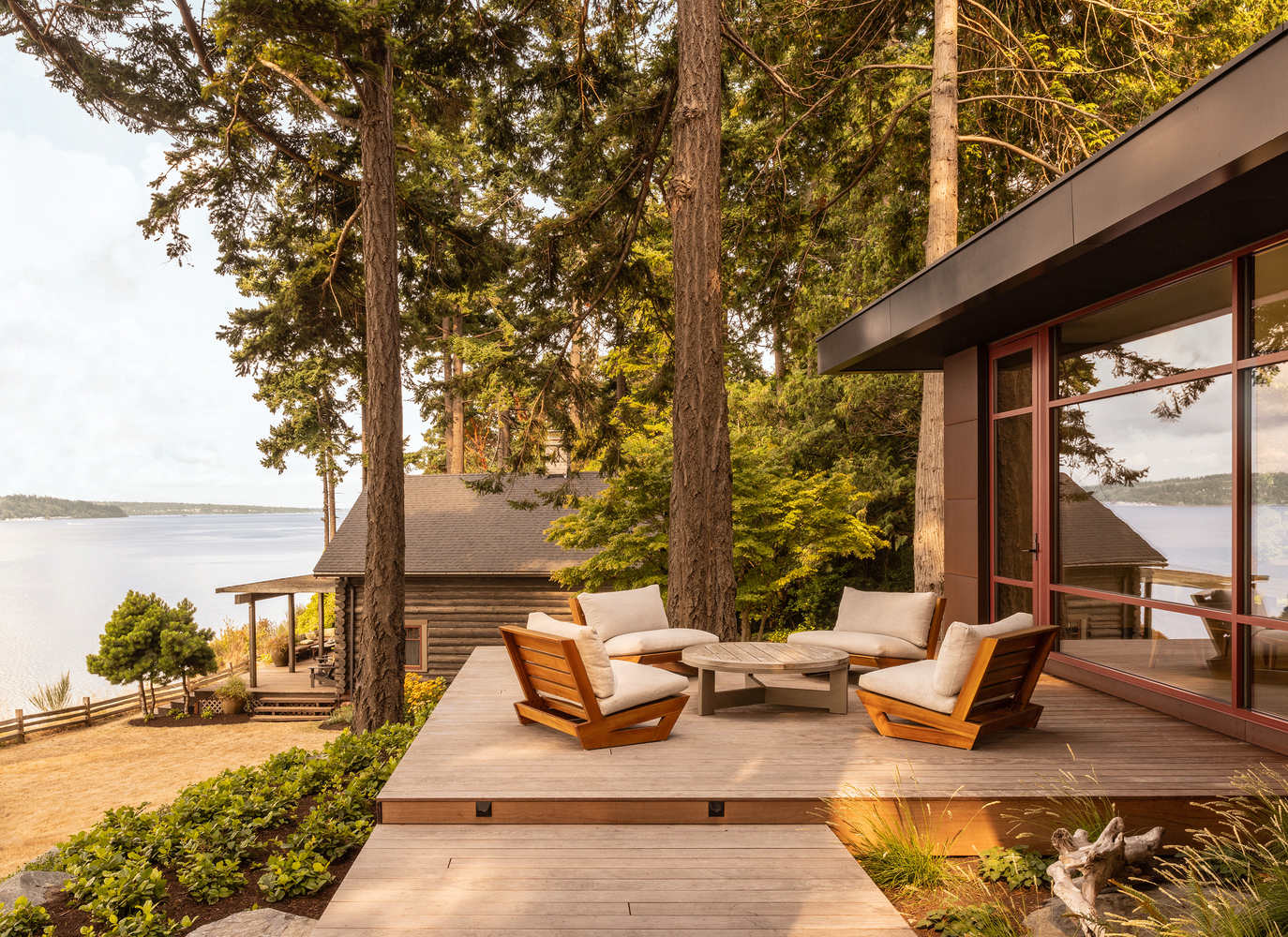 The extension was planned through a process of "carving" in order to frame critical views of the water while reserving large blocks of programmed storage and counter space for cooking.