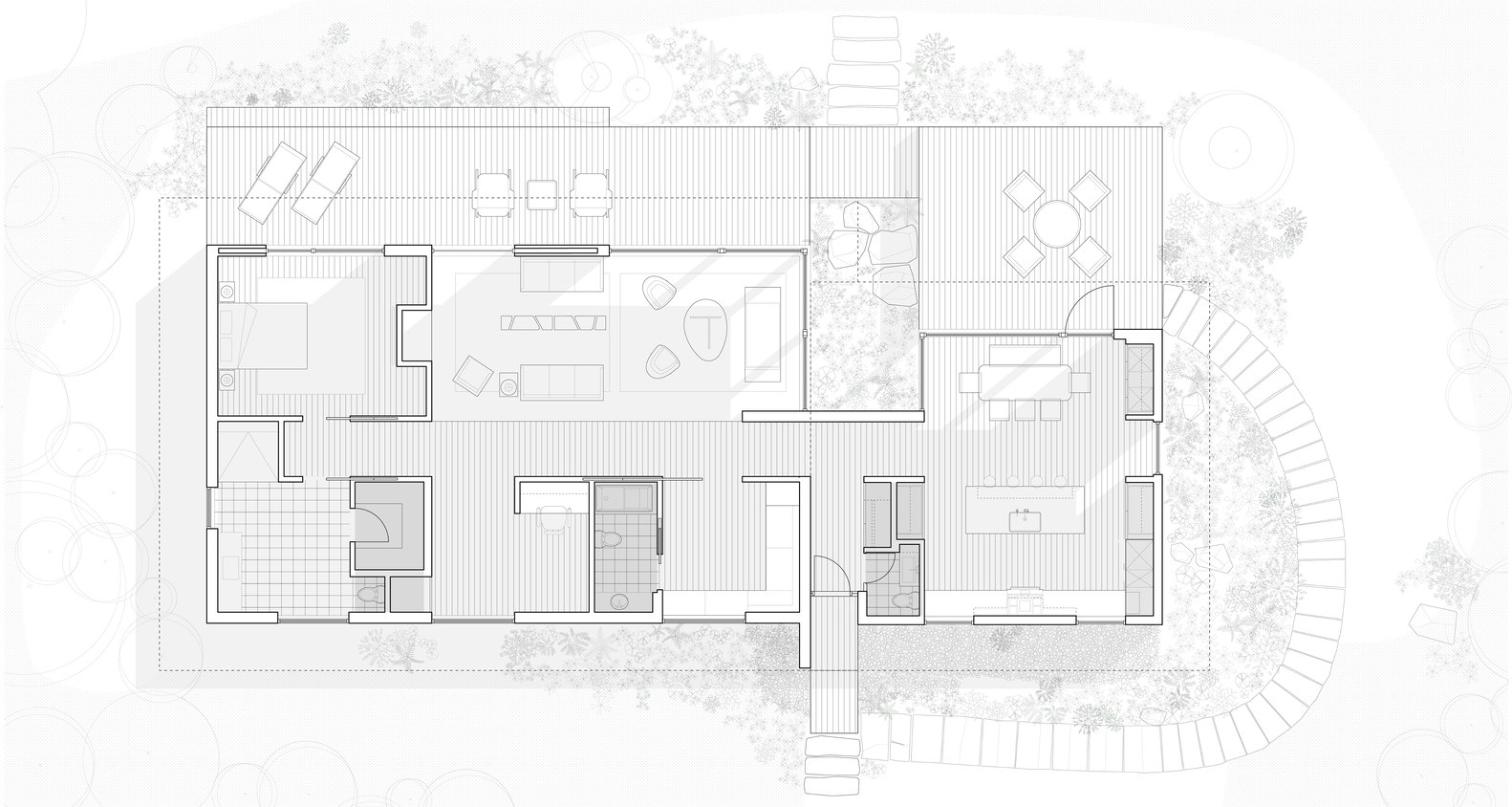 Hoppenot, founder of Studio PHH Architects, was brought onto the project after being recommended by a family friend who saw them struggle with preserving the site's beauty and the home's intentions as originally designed by Terry Hunziker.