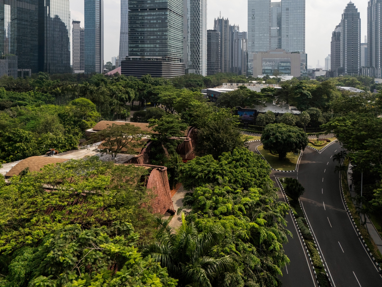 By integrating this recycled material system into a prominent site of Jakarta, the structure stands as a testament to waste management issues, reminding the public and policymakers of the 7 million tons of plastic untreated annually in Indonesia.