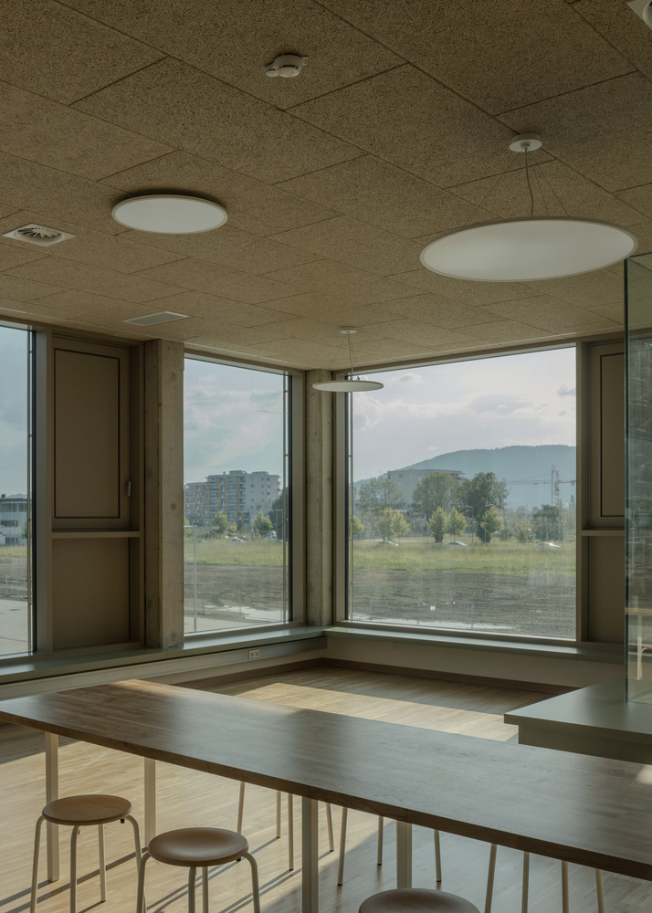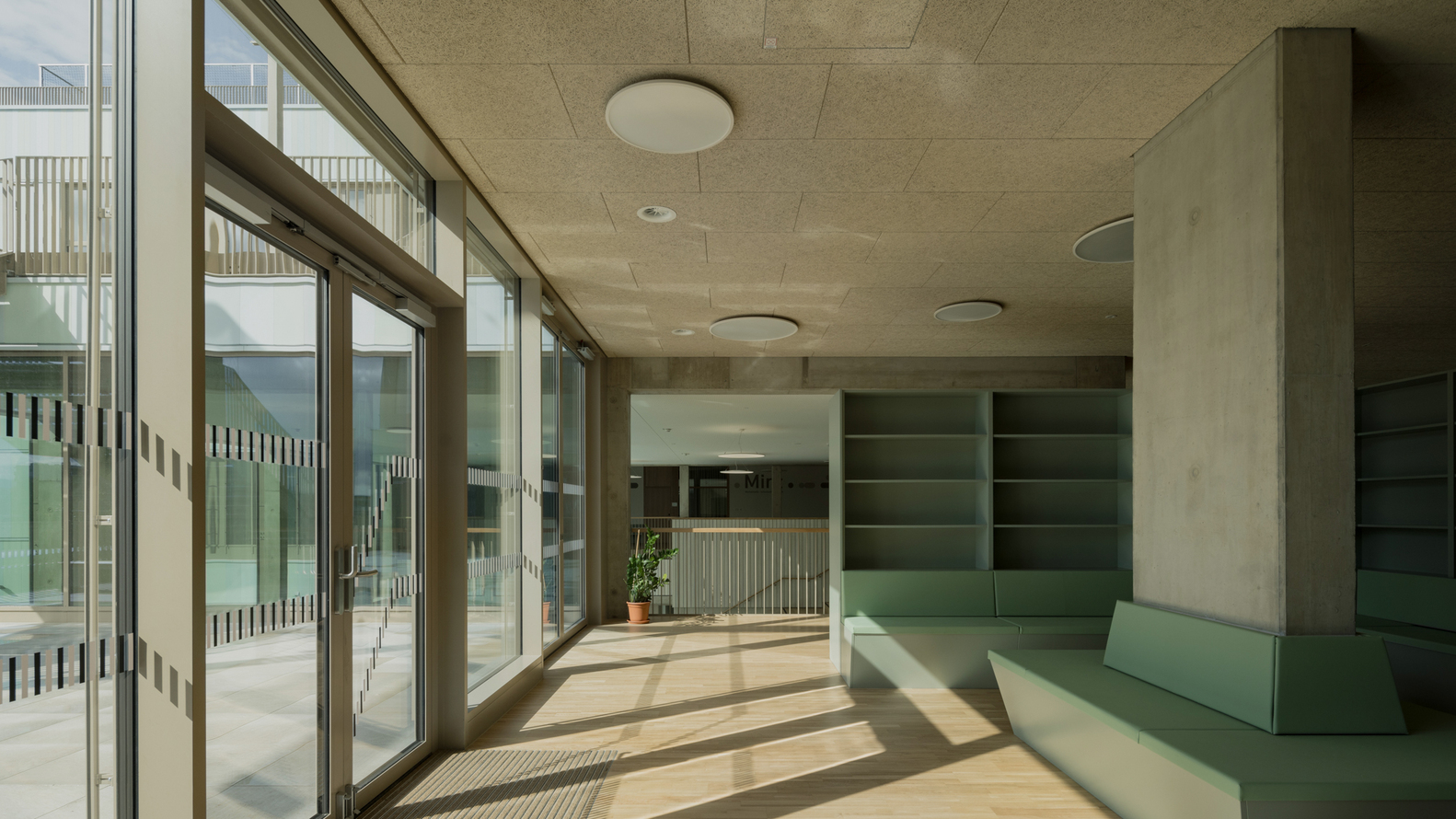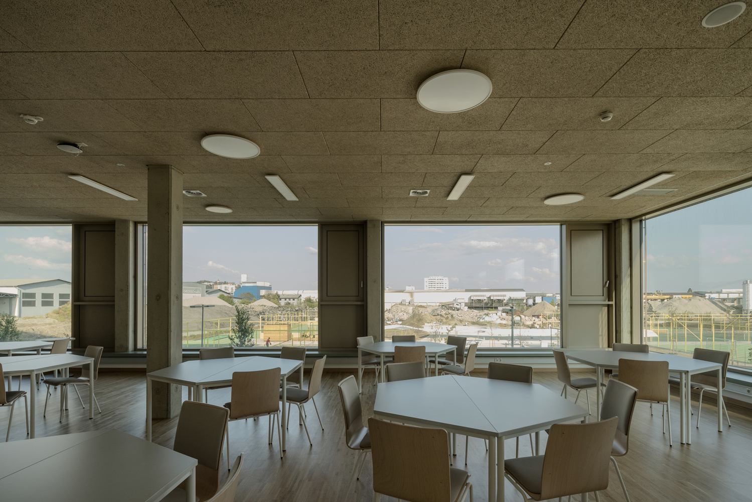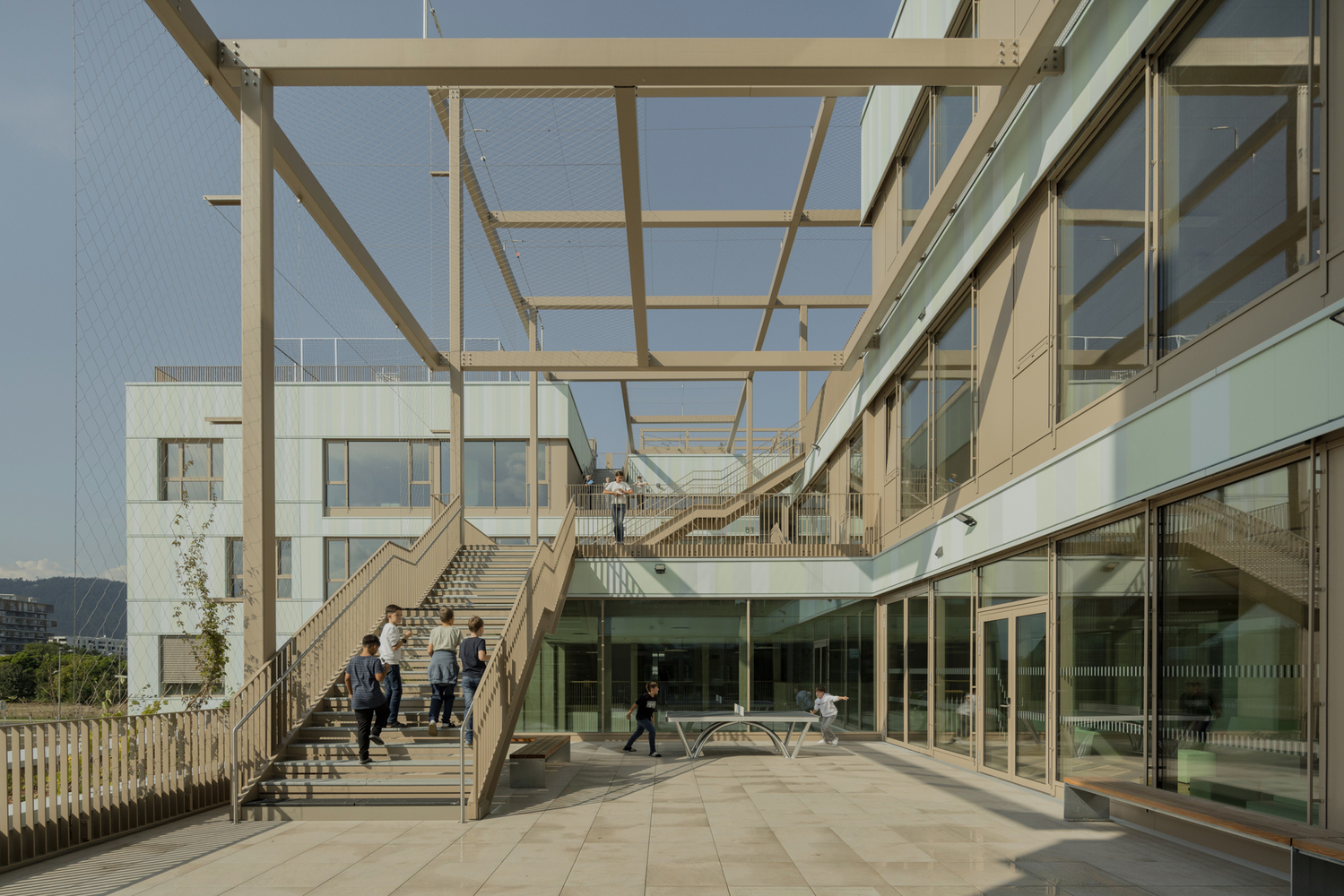 A flowing spatial network of learning islands, multipurpose corridors, and terrace gardens, flooded with light and with multi-layered views, is created. The incised, green terraces and the schoolyard remain perceptible at all times and support orientation.