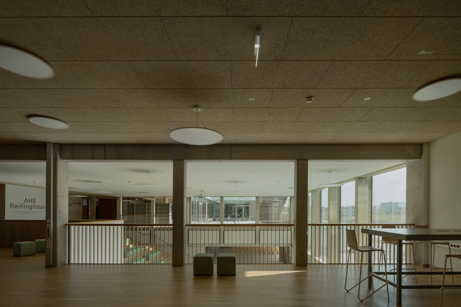 Wooden surfaces and warm colors enhance the pleasant and inspiring room atmosphere. The architecture supports the "AHS Reininghaus - Fostering a new generation of creative thinkers".