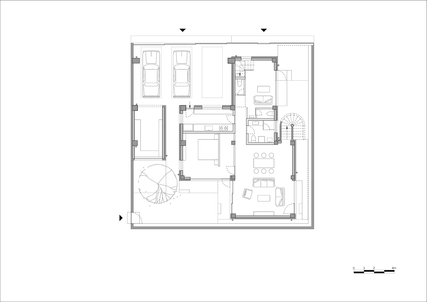 This requirement essentially predetermined that the side of the plot facing the main road had to be allocated for the garage function.