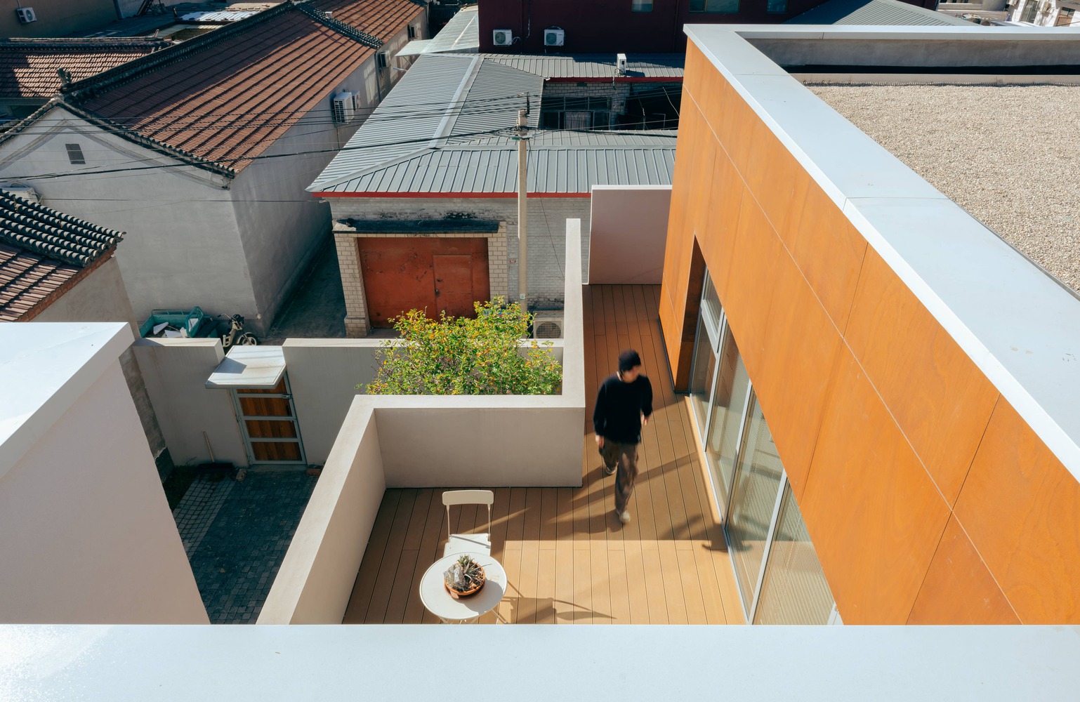 Meanwhile, to ensure residential privacy, we designed the building in a stepped form, providing terraces for the second-floor bedrooms, and raised the perimeter walls to 1.6 meters to avoid visual interference with neighbors.