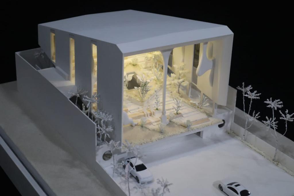 The design explores the simplicity of basic geometry. The design was to introduce a strong volume of cubes, carved by a series of symmetrical playful plans on the ground floor and a contrast of organic amphitheater on the second floor.